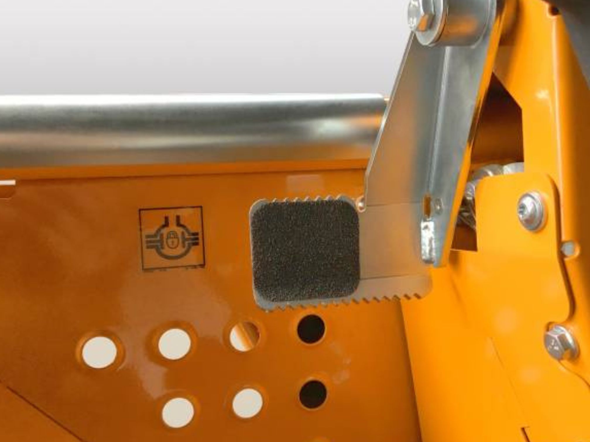 Nízke ťažisko, sklopný ochranný rám a bočné ochranné rámy sú pridané k bezpečnostným prvkom, zatiaľ čo upevňovacie body integrované v ráme umožňujú bezpečnú prepravu.