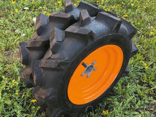 Jeden pár (2 x 2) zadných zdvojených pneumatík s extrémnym dezénom pre najvyššiu trakciu.