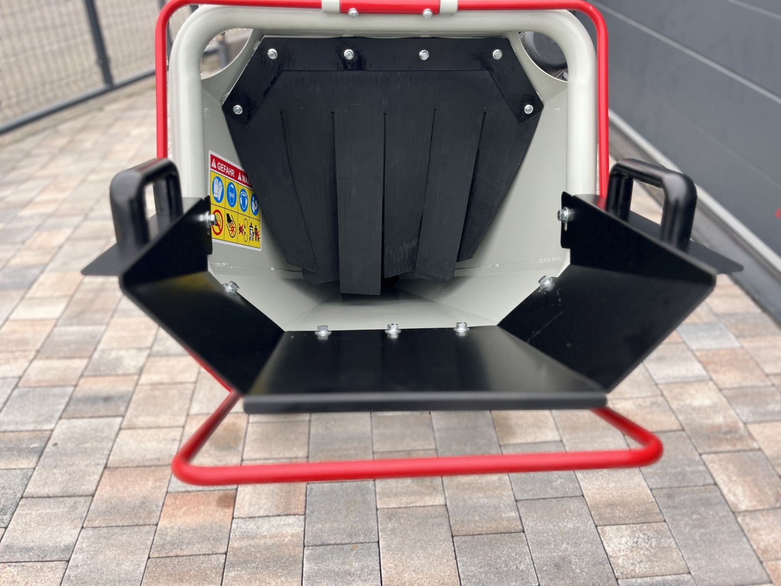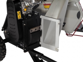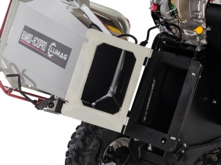 ✓ Plniaci a vypúšťací lievik je možné sklopiť do strany a vyčistiť tak rezaciu hlavu.