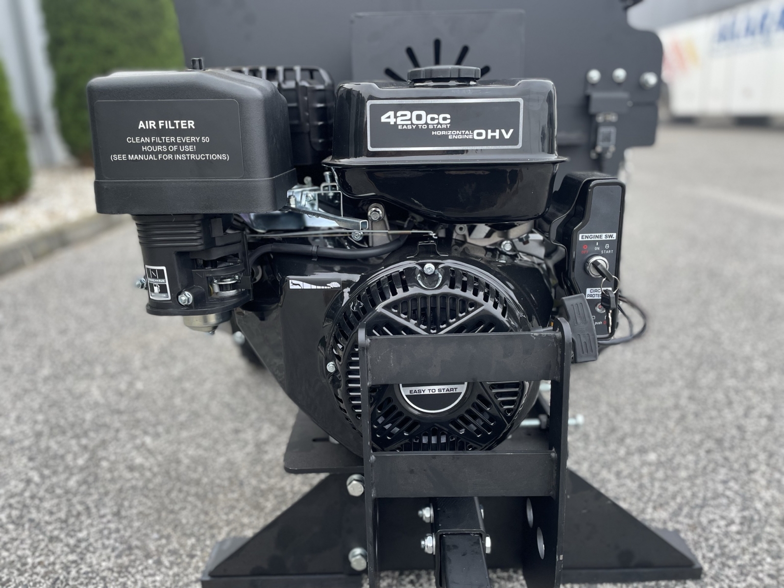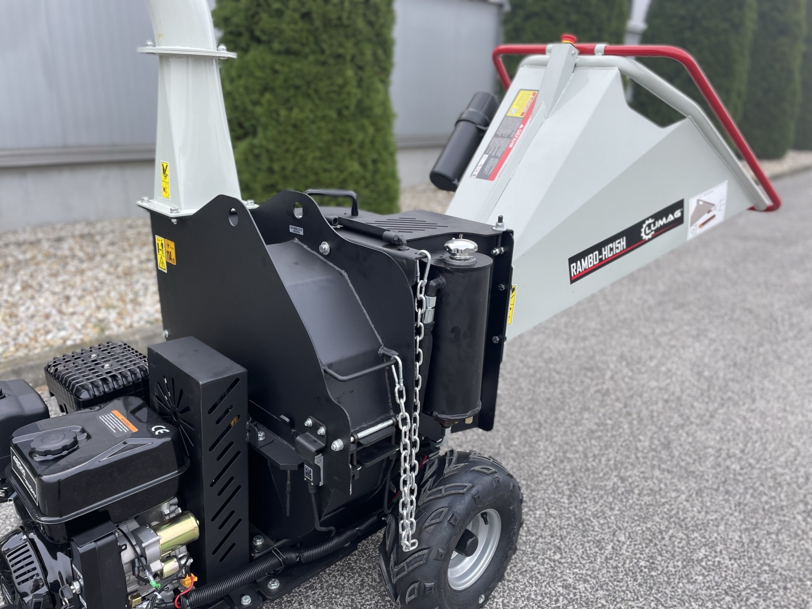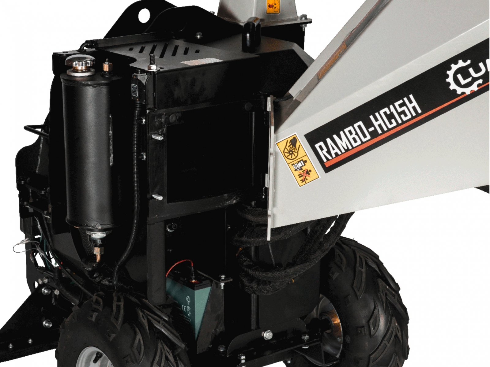 ✓ Hydraulicky podávaný valec. ✓ Vďaka vysoko výkonnému benzínovému motoru, s výkonom 15 HP pri 3600 ot/min, štiepkovač drví vetvy až do hrúbky 120 mm. ✓ RAMBO HC15H je ideálny štiepkovač do záhrad a pozemkov bez elektrickej energie. ✓ Nastaviteľná rýchlosť podávacieho valca. ✓ Integrovaný podvozok pre rýchly a jednoduchý transport. ✓ Vybavený elektroštartérom. ✓ Batéria a počítadlo motohodín je súčasťou zariadenia.