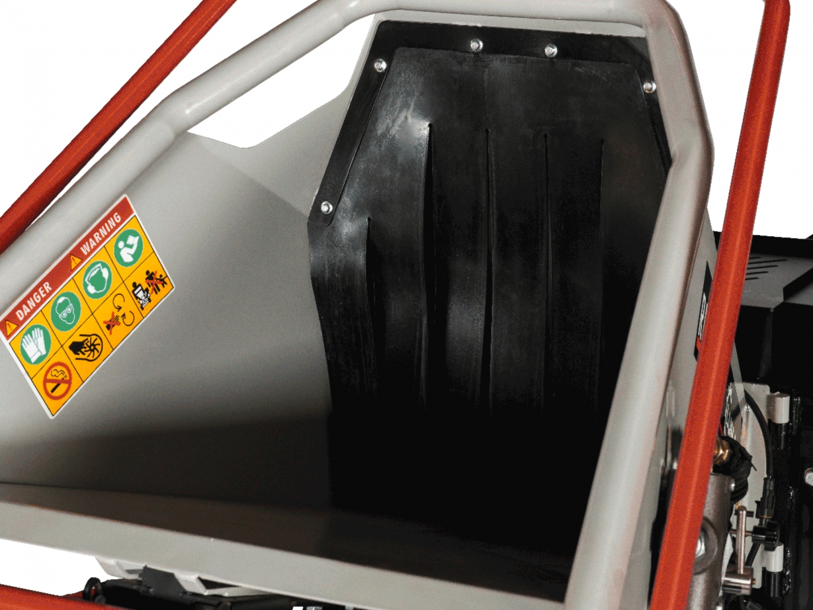 Robustné štiepkovacie ústrojenstvo tvorené rotorom s 2 nožmi, protinožom a 10 oceľovými otočnými kladivkami rozdrvia vetvy na jemnejšiu štiepku.