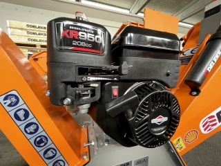 • Profesionálny benzínový štiepkovač DELEKS DK-500-B&S s 6,5 HP Briggs & Stratton motorom. Systém štiepacích bubnov rozdrví vegetáciu pomocou 2 vodorovných nožov + 1 protiľahlej čepele až do priemeru 7 cm. Spojka zabráni priamemu pohybu medzi motorom a bubnom, uľahčí tak studený štart a v prípade zaseknutia alebo vniknutia cudzích predmetov zabráni poškodeniu kľukového hriadeľa.