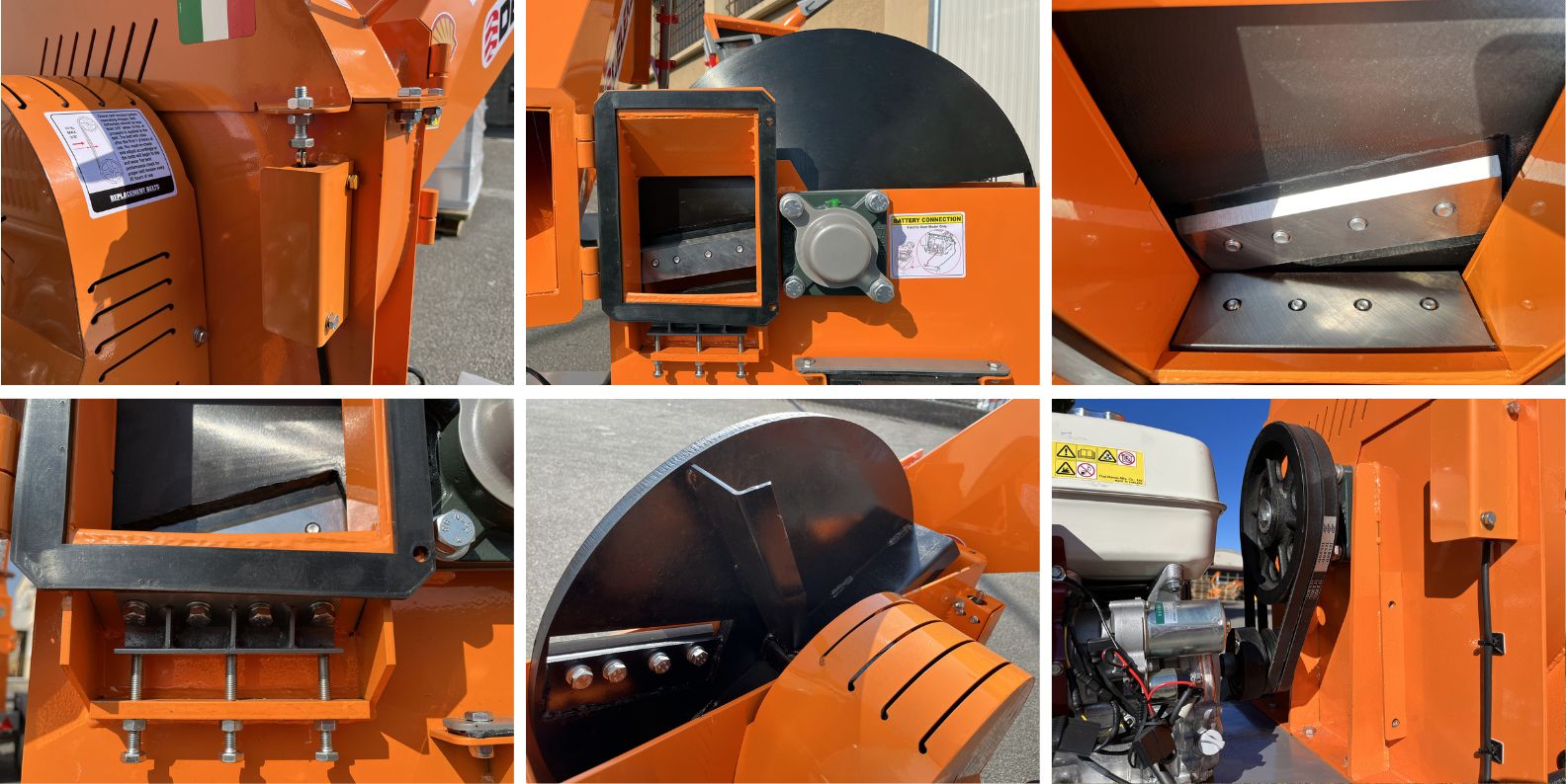 Otvárateľný kryt na údržbu a výmenu nožov. Výborná manévrovateľnosť vďaka kolesám s priemerom 40 cm.