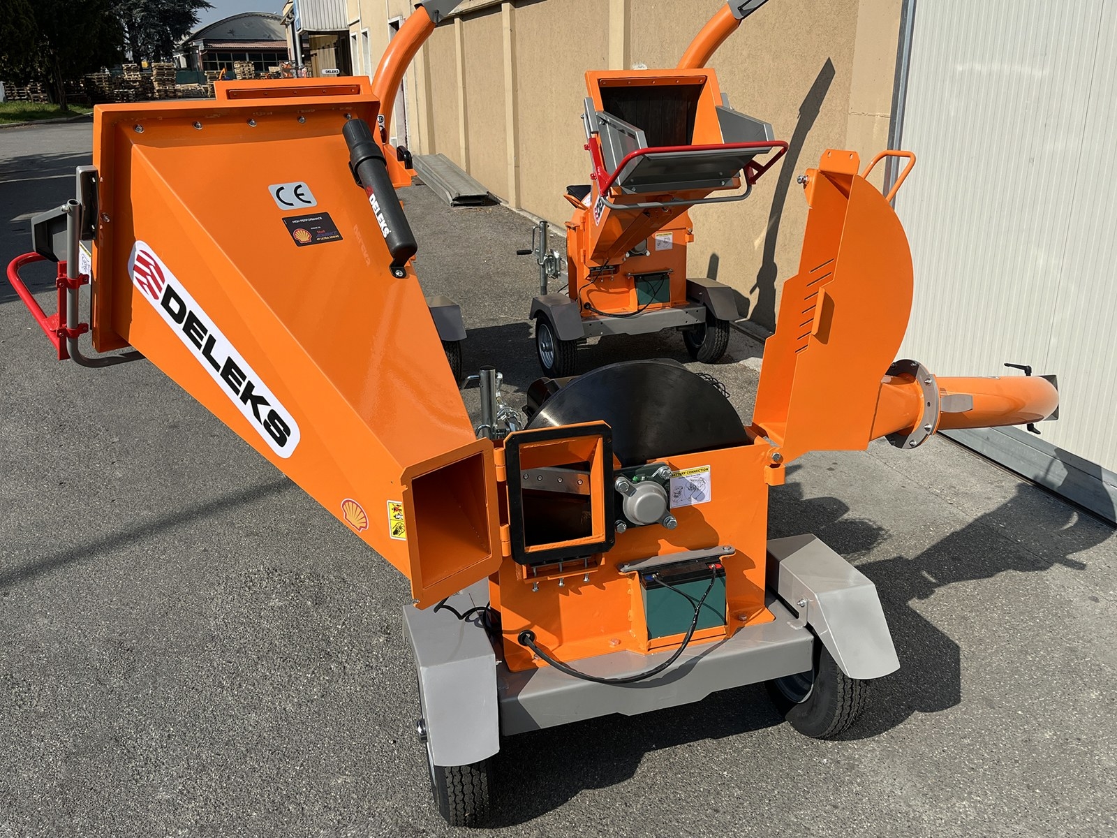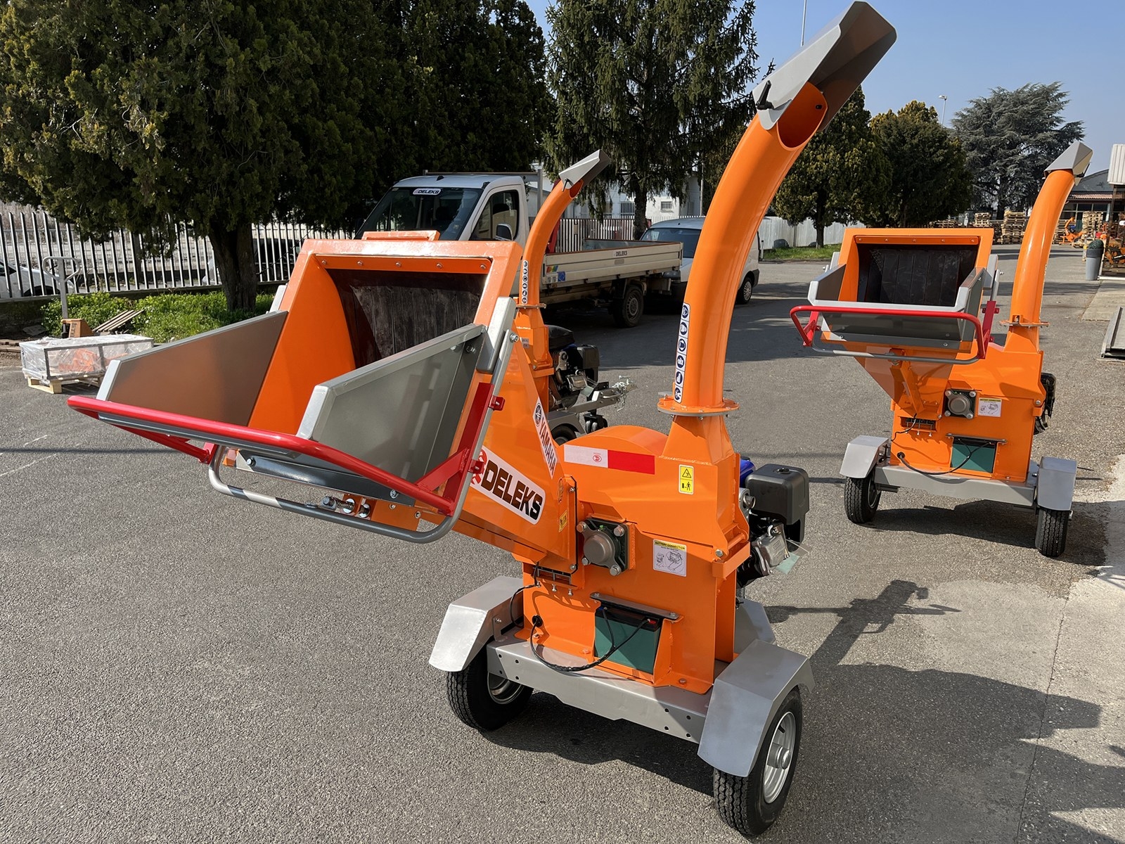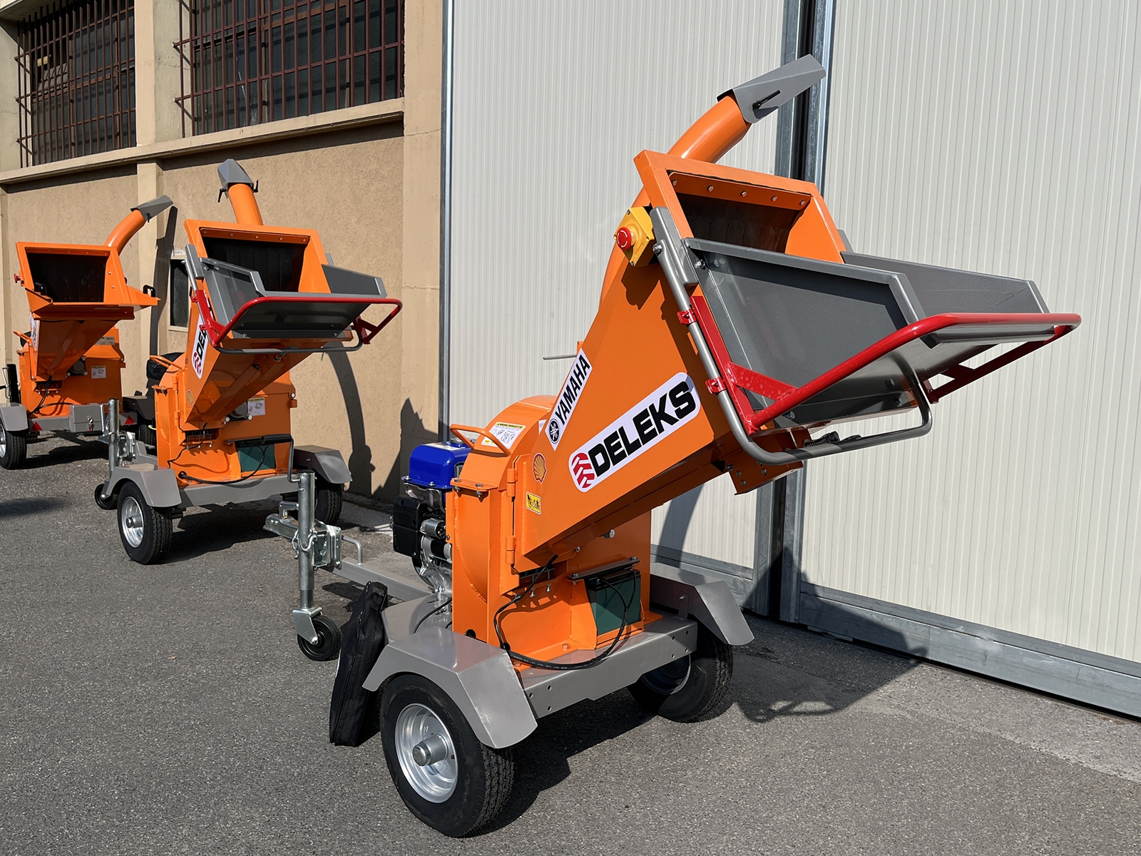 Prepracovaný vyhadzovací komín. Jeho výška 192 cm umožňuje vykladanie materiálu priamo do kompostovacích nádob alebo na korbu nákladného auta.