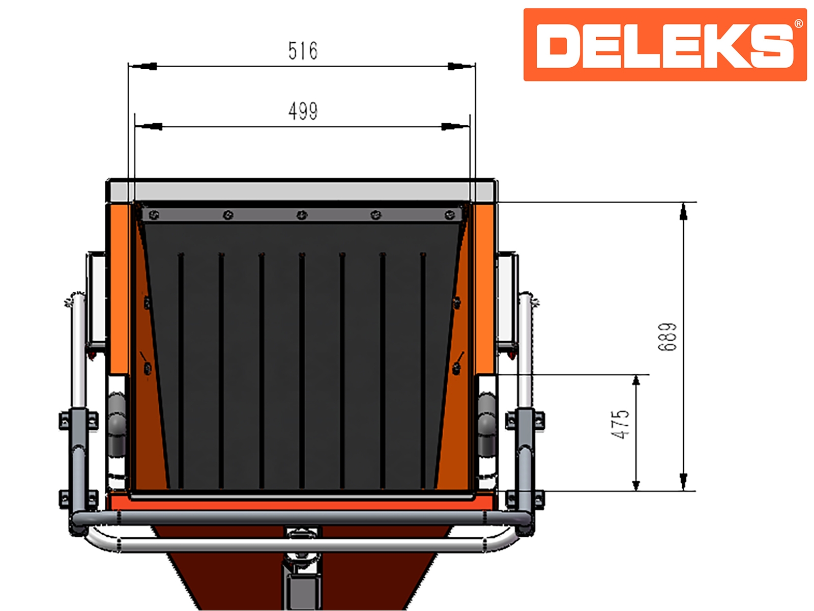 Prepracovaný vyhadzovací komín. Jeho výška 192 cm umožňuje vykladanie materiálu priamo do kompostovacích nádob alebo na korbu nákladného auta.