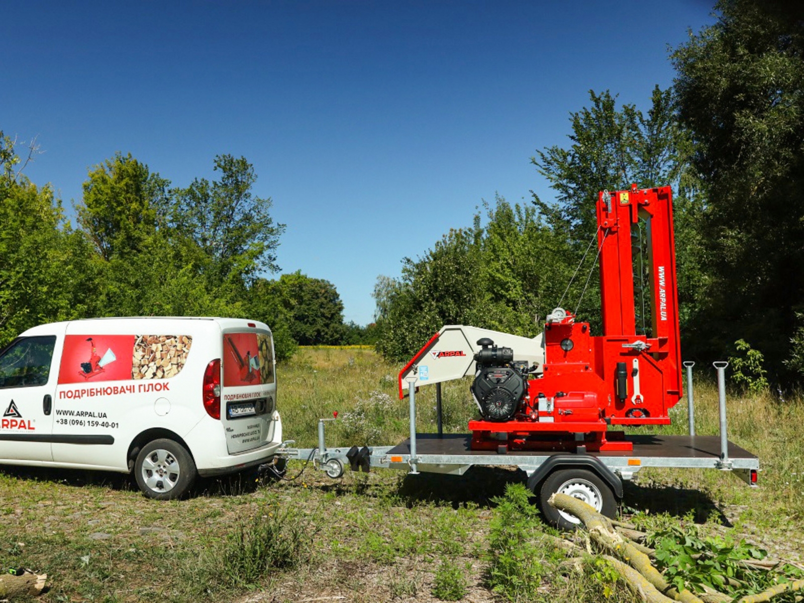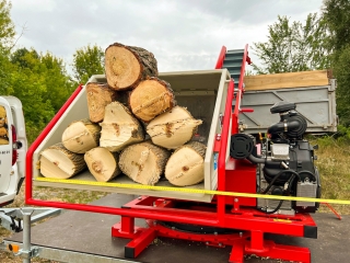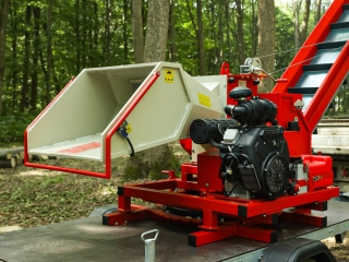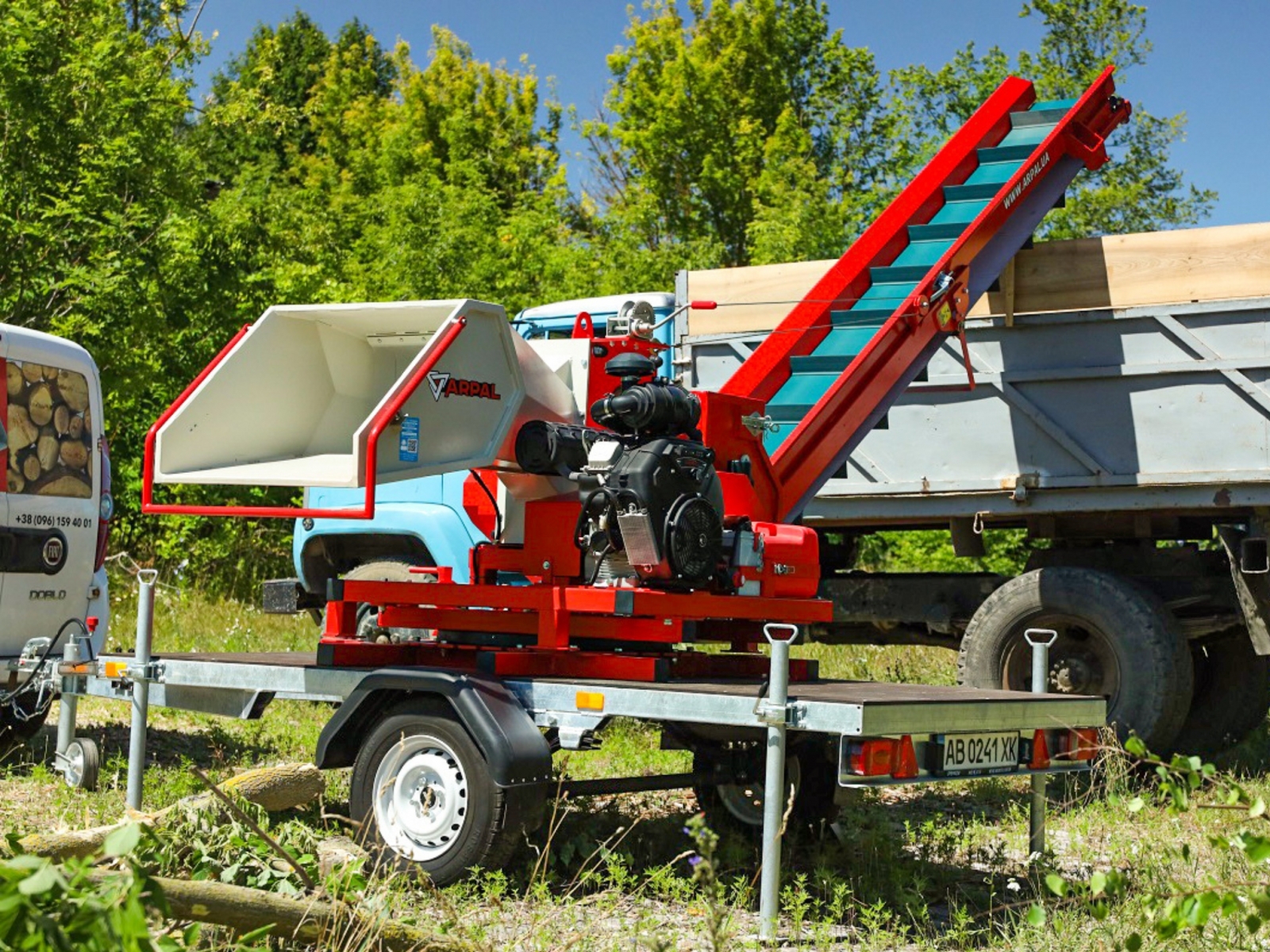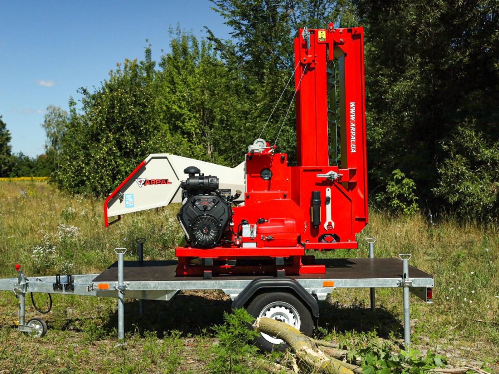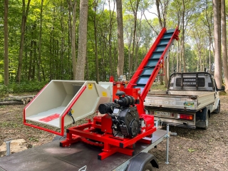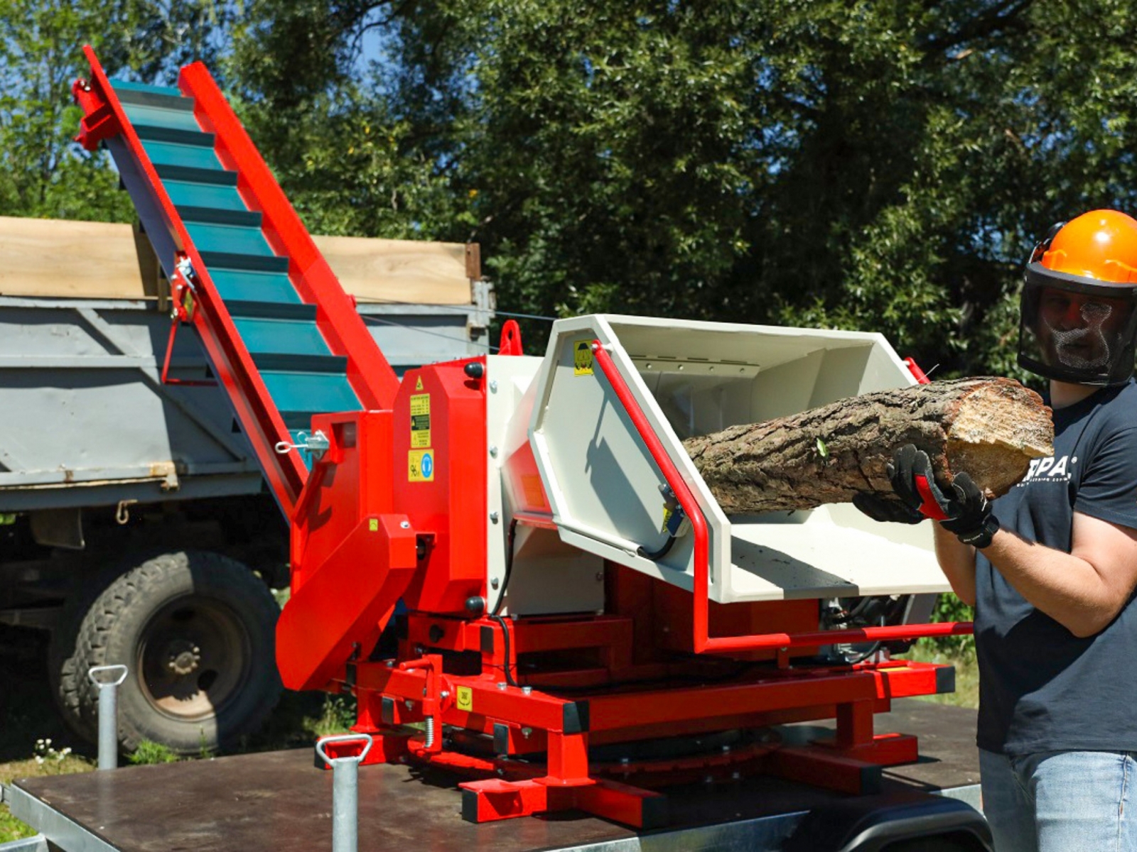 Benzínový špalíkovač dreva s dopravníkom (štiepkovač) Arpal AM-200BD-K PRO reže konáre, laty a ostatný drevný materiál na špalíky dlhé 120-240 mm. Maximálny priemer rezaného materiálu je 200 mm, v závislosti od vlhkosti a druhu dreva.Špalíkovač je vybavený pásovým dopravníkom, ktorý umožňuje podávať narezaný materiál do prívesu auta alebo špeciálneho kontajnera.