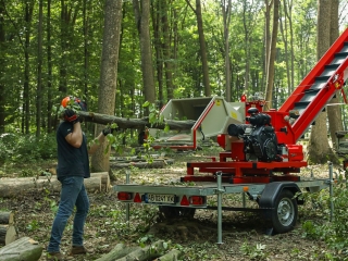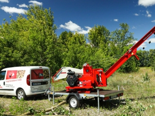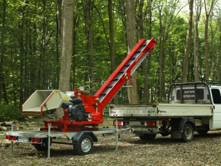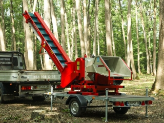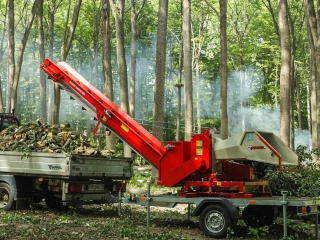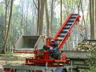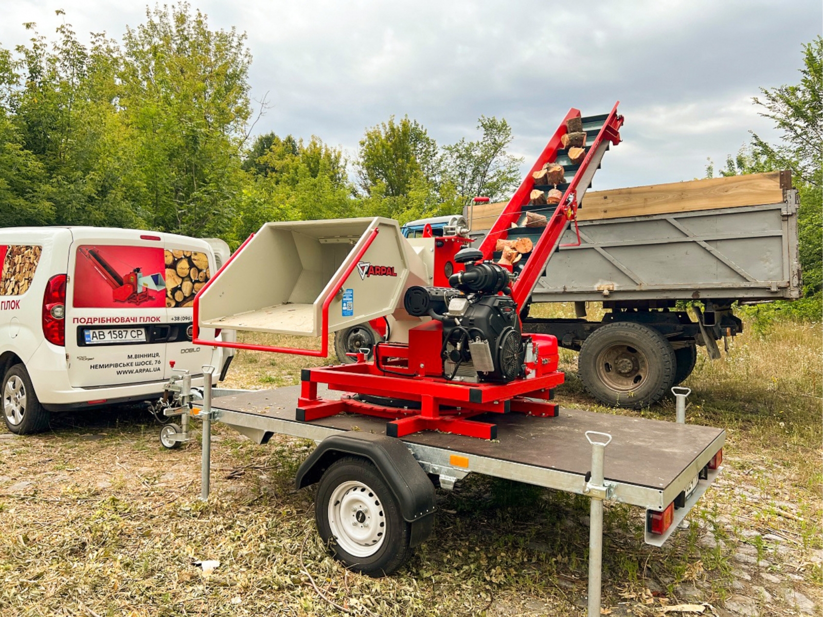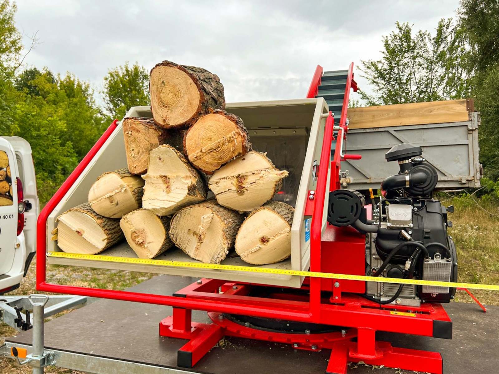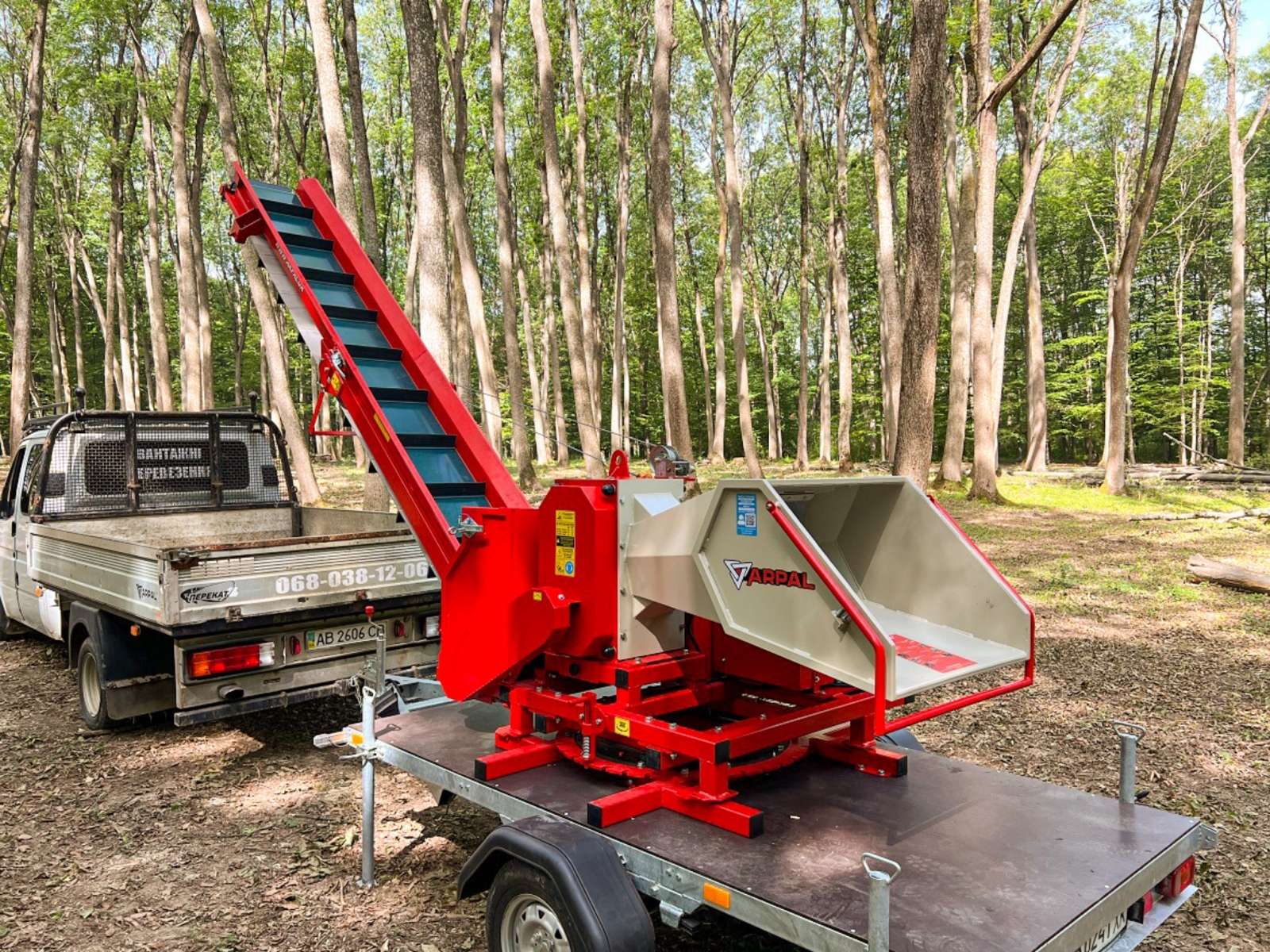 Benzínový špalíkovač dreva s dopravníkom (štiepkovač) Arpal AM-200BD-K PRO reže konáre, laty a ostatný drevný materiál na špalíky dlhé 120-240 mm. Maximálny priemer rezaného materiálu je 200 mm, v závislosti od vlhkosti a druhu dreva.Špalíkovač je vybavený pásovým dopravníkom, ktorý umožňuje podávať narezaný materiál do prívesu auta alebo špeciálneho kontajnera.