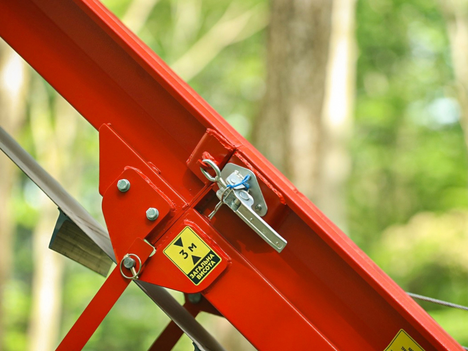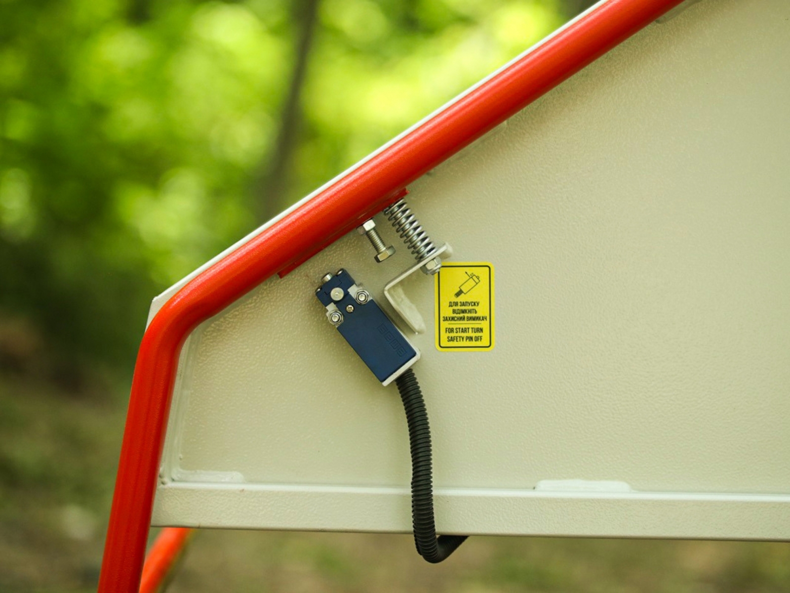 - Špalíkovač AM-200BD-K PRO je vybavený špeciálnou bezpečnostnou rukoväťou, ktorá je umiestnená na okraji vstupnej násypky a slúži na núdzové zastavenie počas prevádzky.