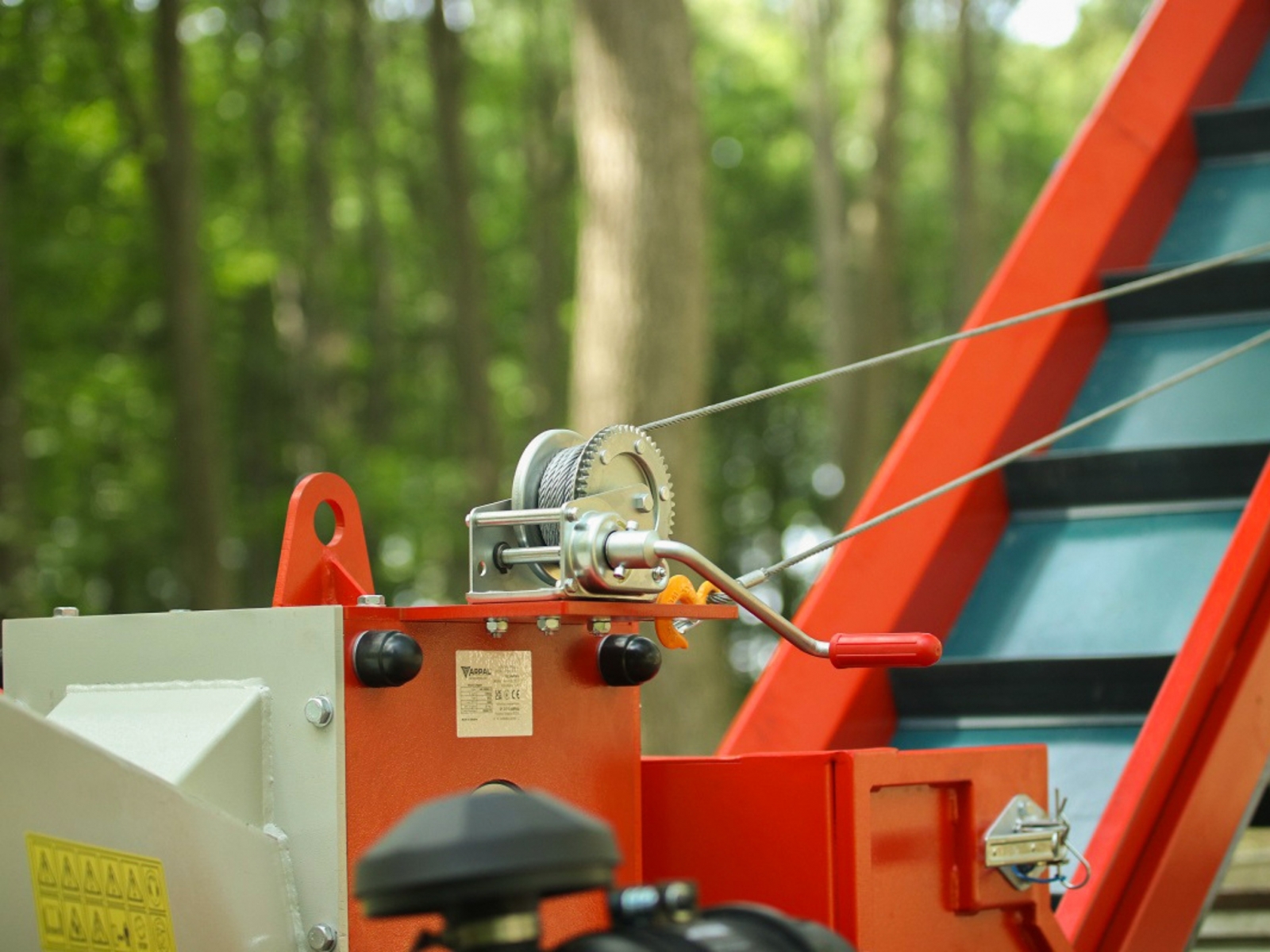- Vstupná násypka je tiež vybavená clonou z priehľadného PVC, ktorá chráni obsluhu pred trieskami počas prevádzky.