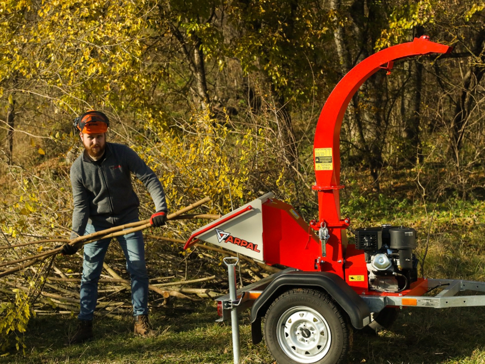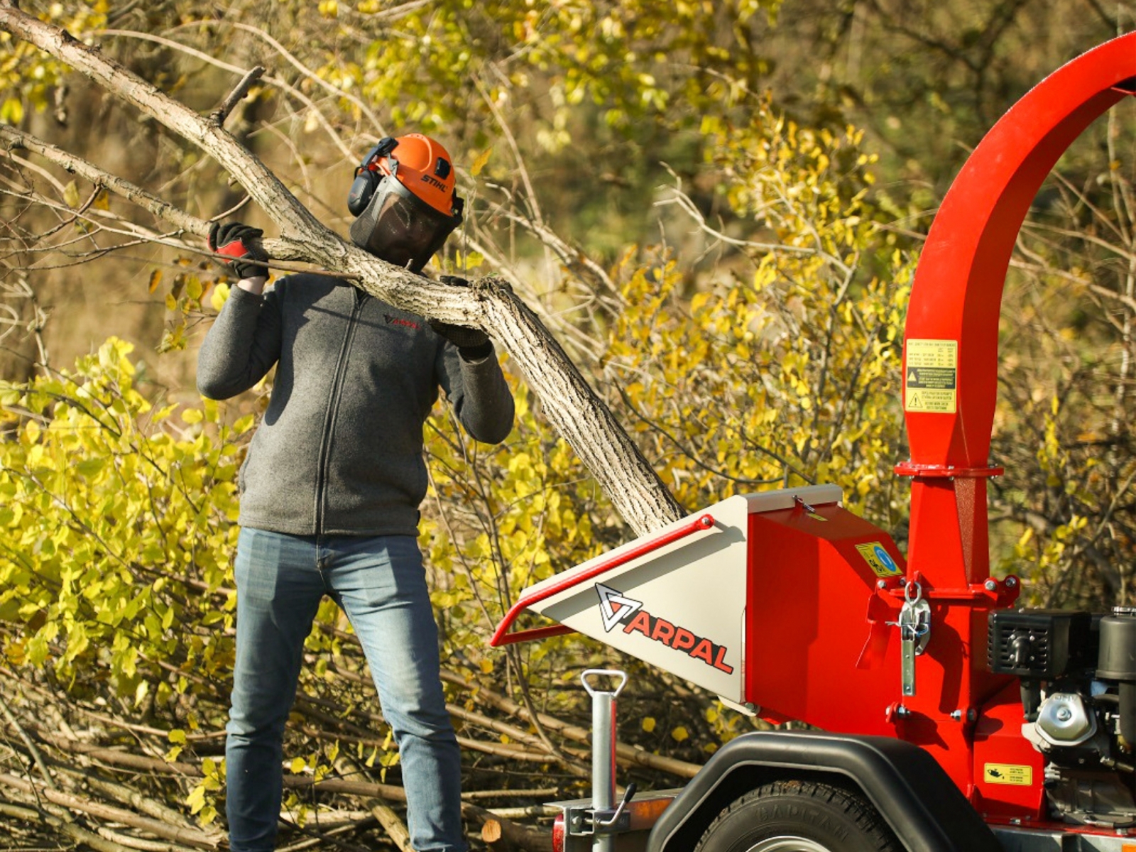 Benzínový štiepkovač dreva ARPAL MK-120BD drví konáre a iný drevný materiál na štiepku o veľkosti 5 - 50 mm. Maximálny priemer rezaného materiálu je 120 mm, v závislosti od druhu a vlhkosti materiálu. Vyhadzovací komín je otočný o 360 stupňov. Štiepkovač je poháňaný benzínovým motorom s výkonom 18 hp.