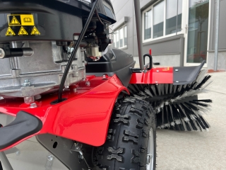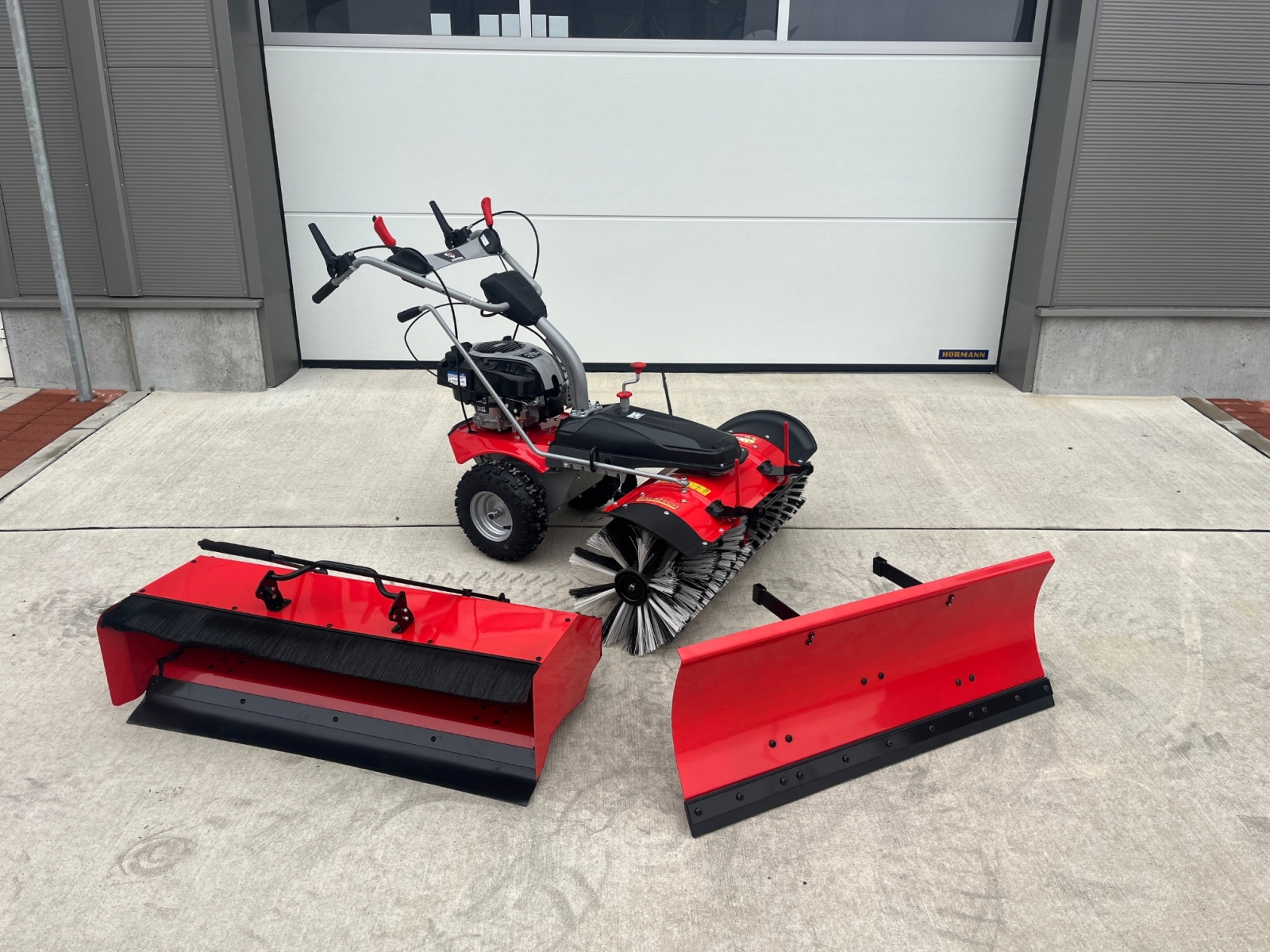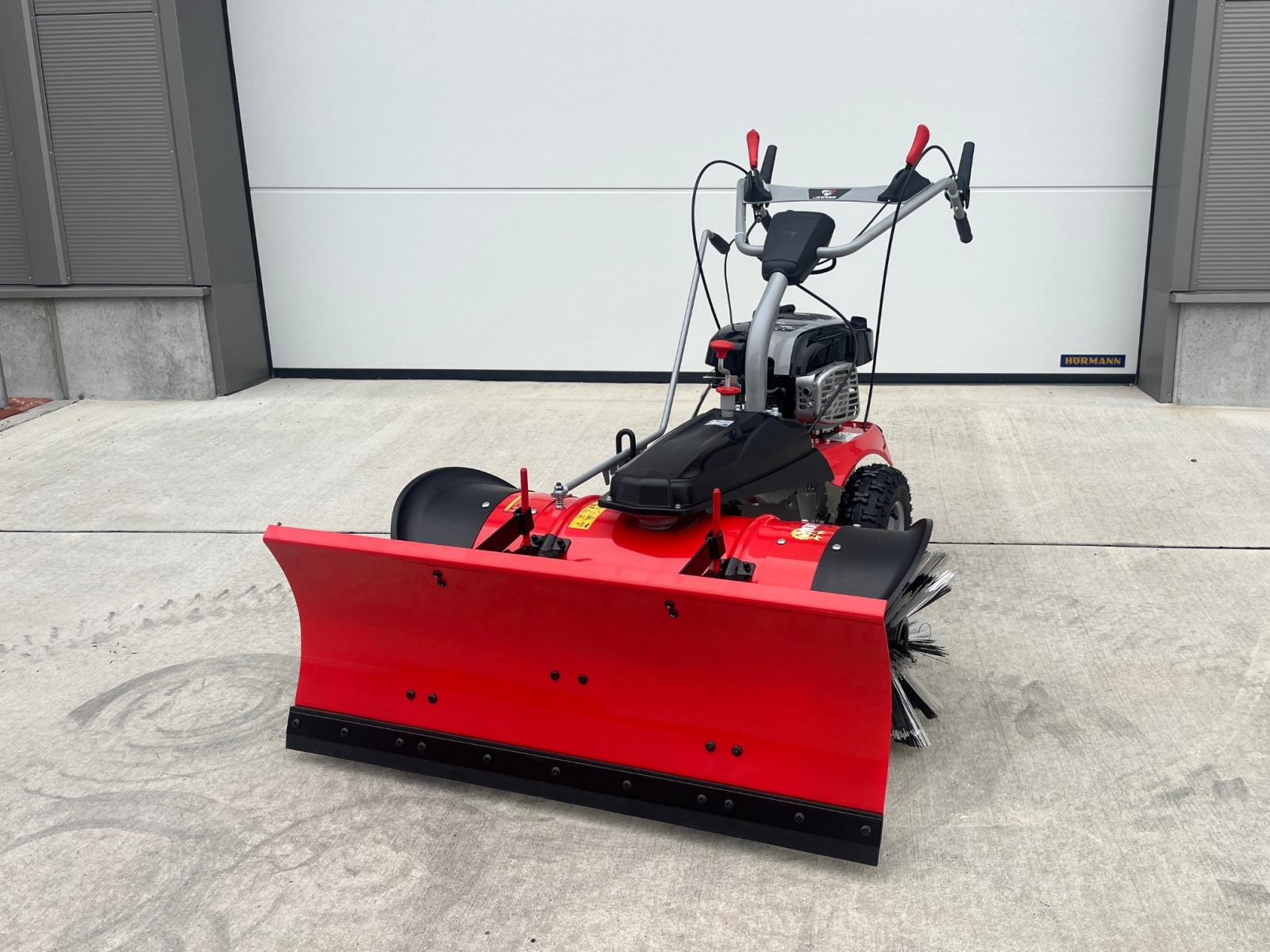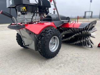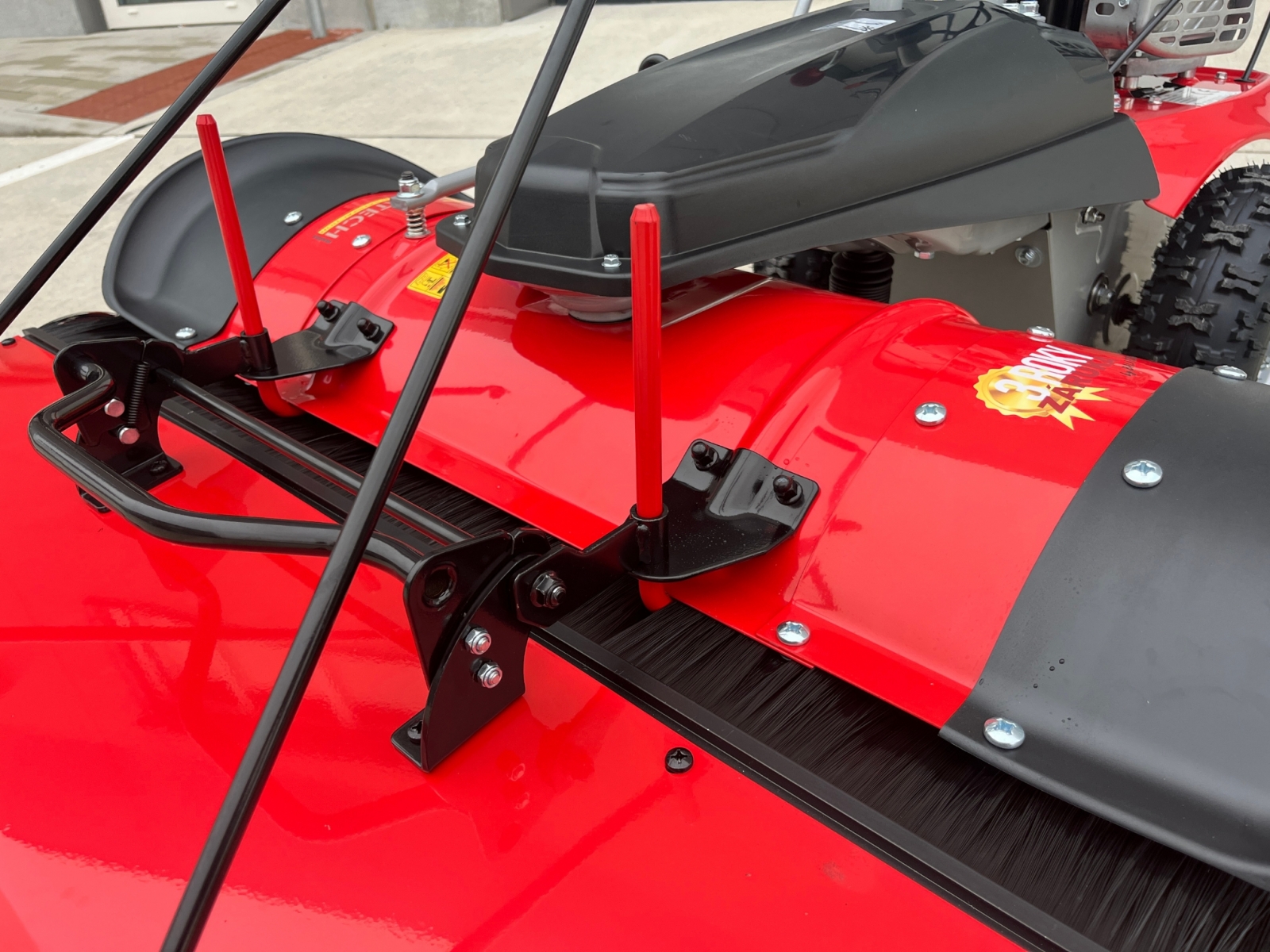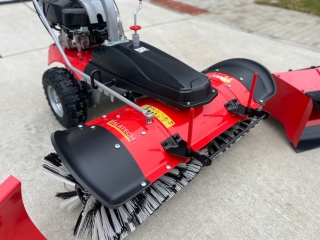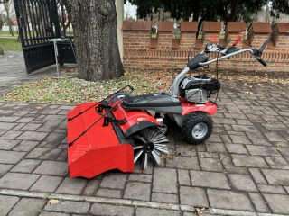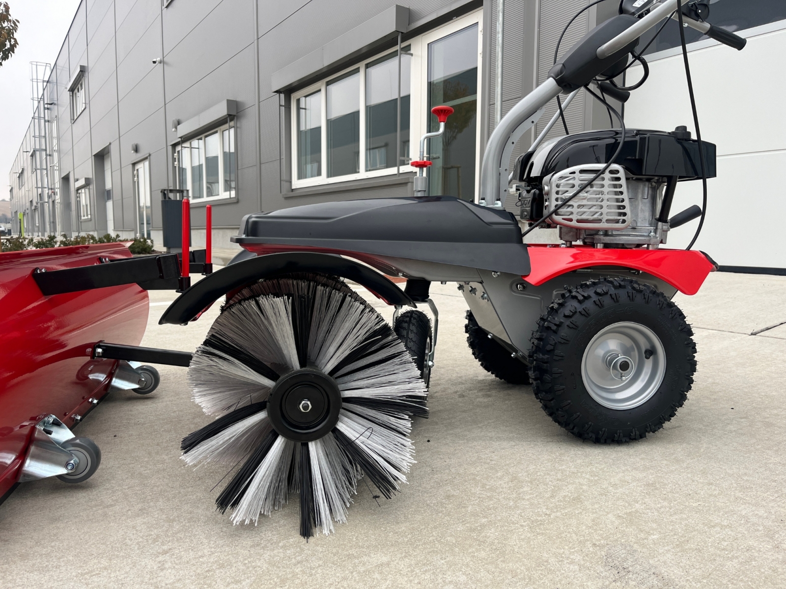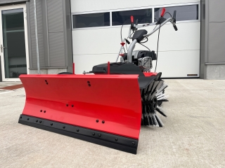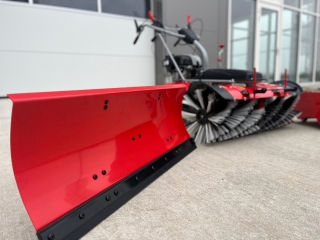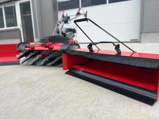 - Ak je jemný sneh, môžete ho pozametať priamo motorizovanou kefou. Ak je sneh už hlbší ako 3-5 cm, jednoducho použite snehový pluh, ktorý je súčasťou dodávky. Dá sa zložiť jednoducho a bez náradia.