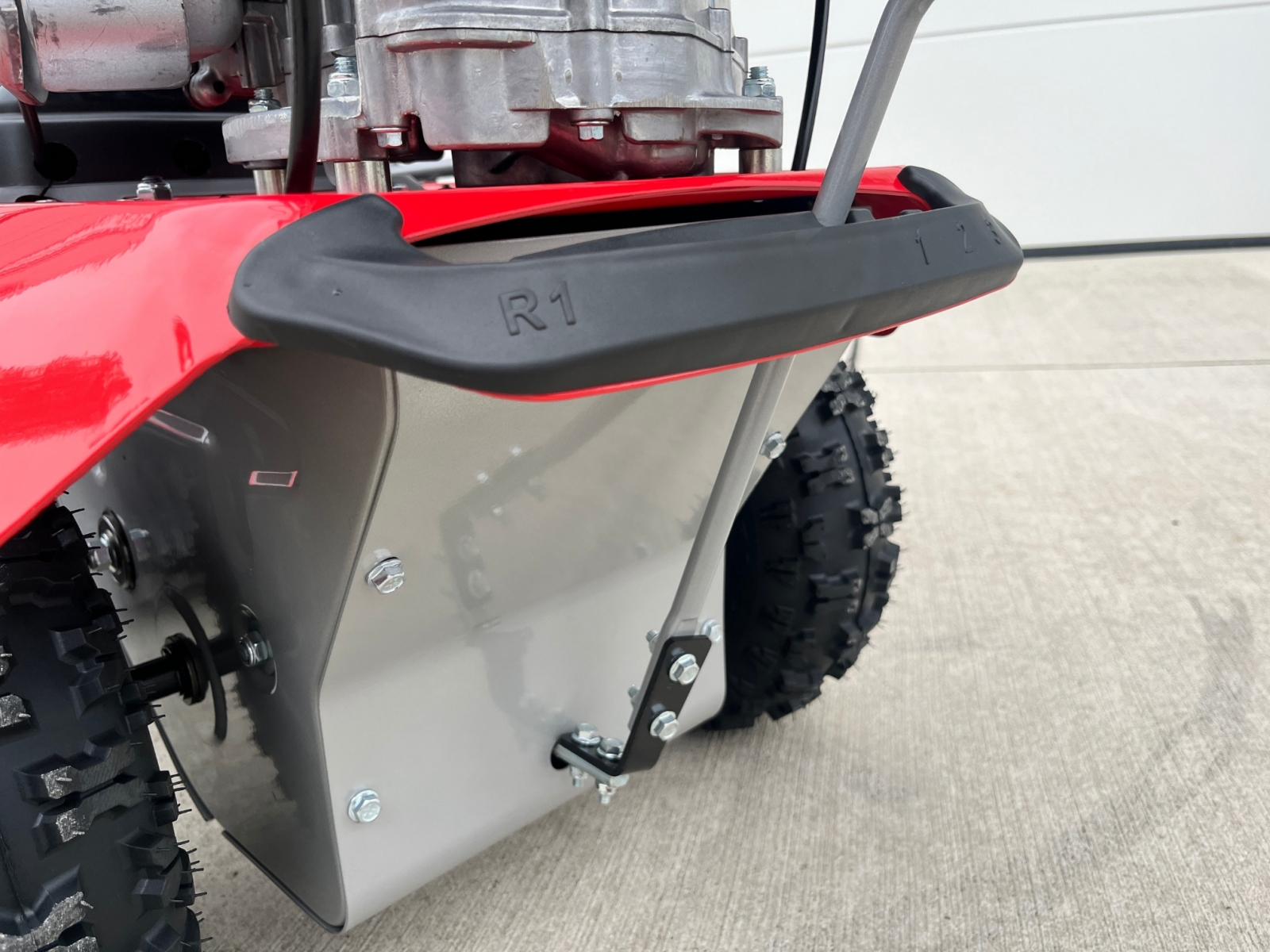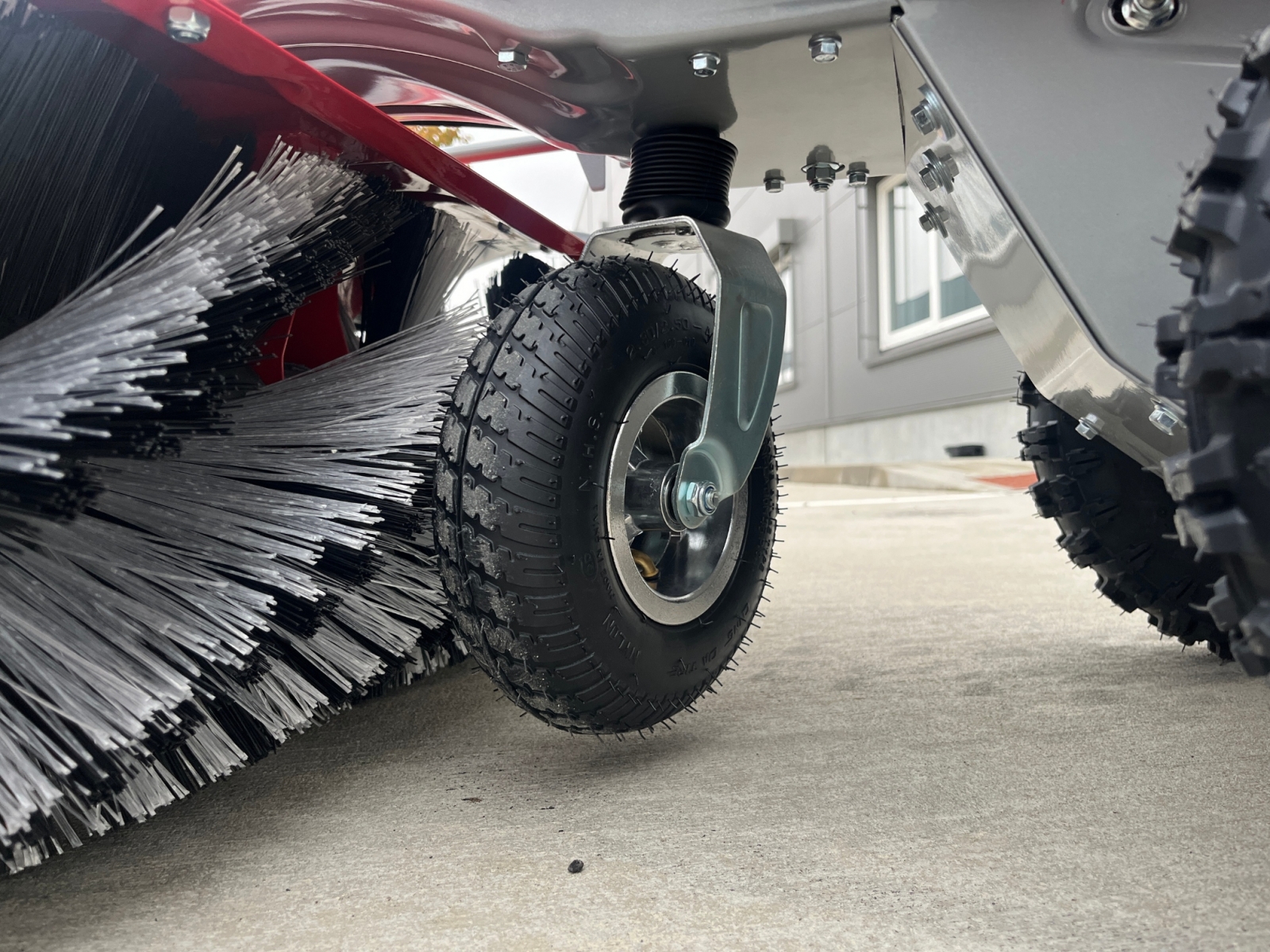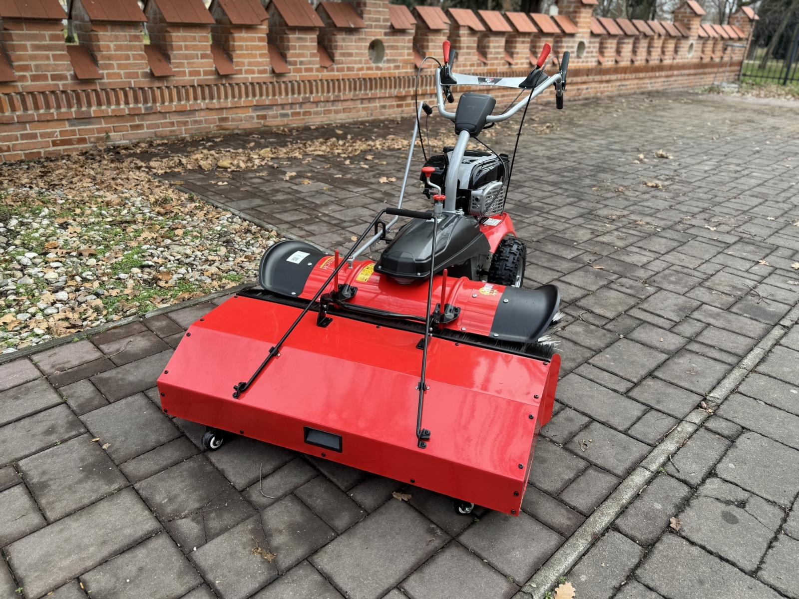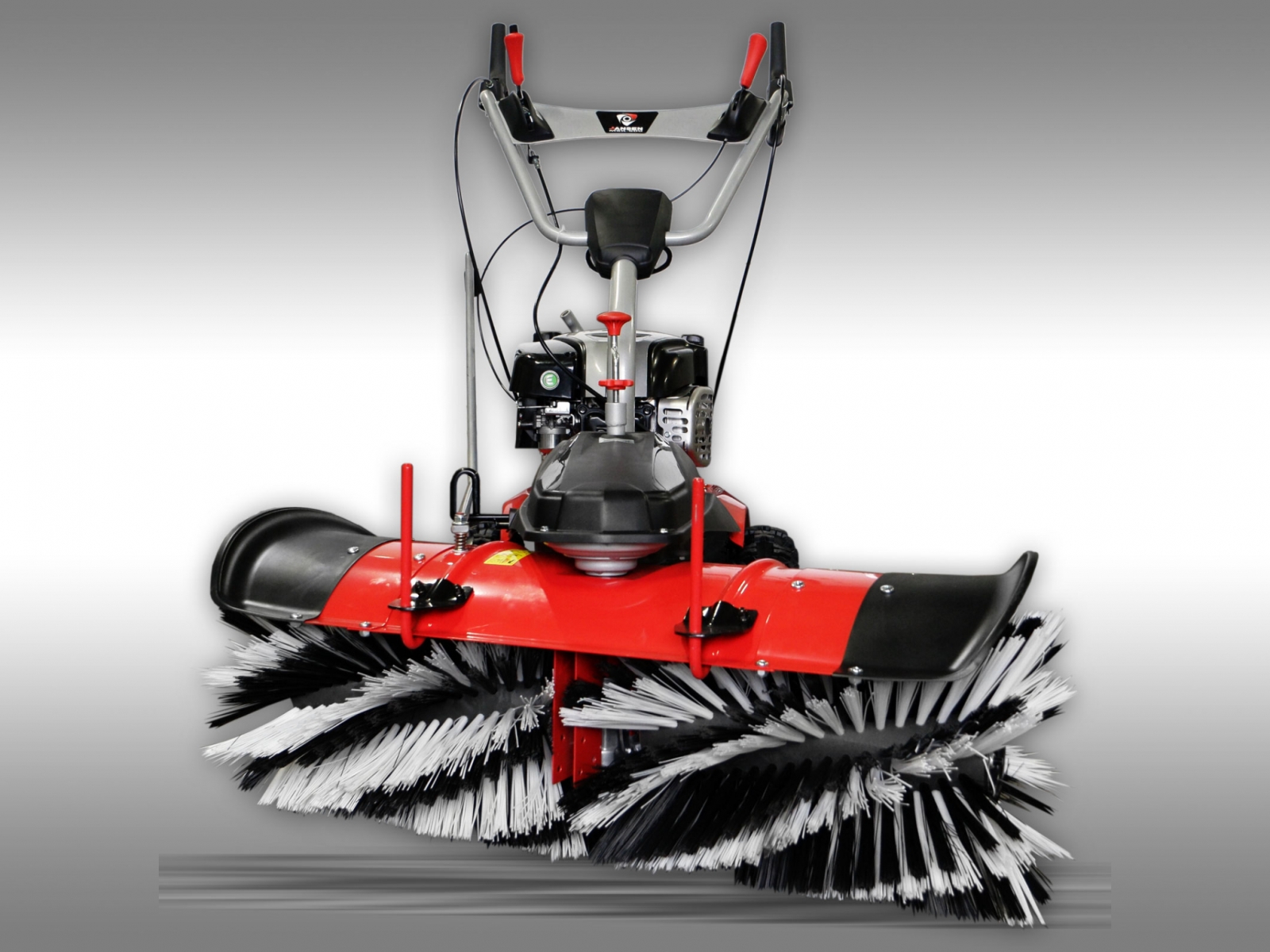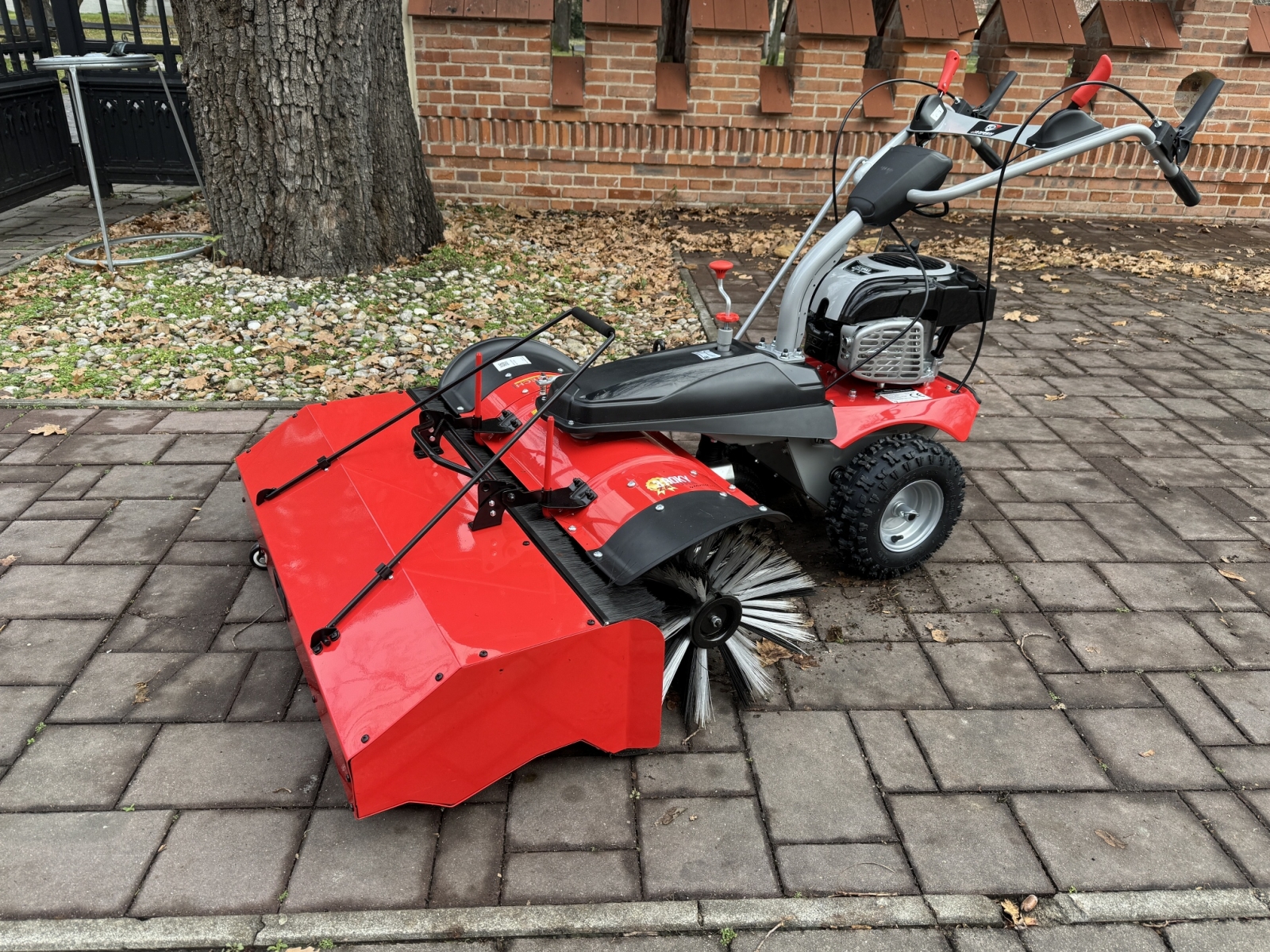 - Ak je jemný sneh, môžete ho pozametať priamo motorizovanou kefou. Ak je sneh už hlbší ako 3-5 cm, jednoducho použite snehový pluh, ktorý je súčasťou dodávky. Dá sa zložiť jednoducho a bez náradia.