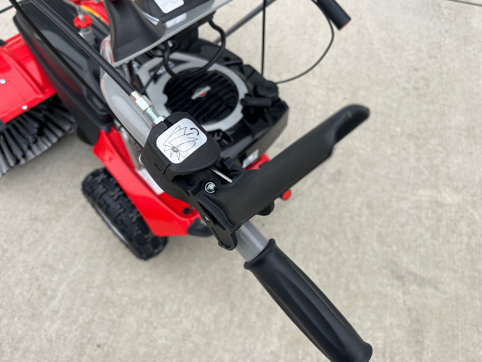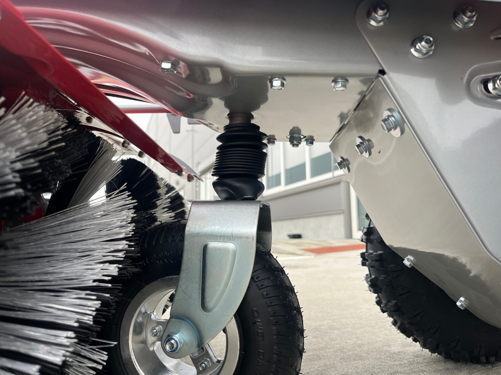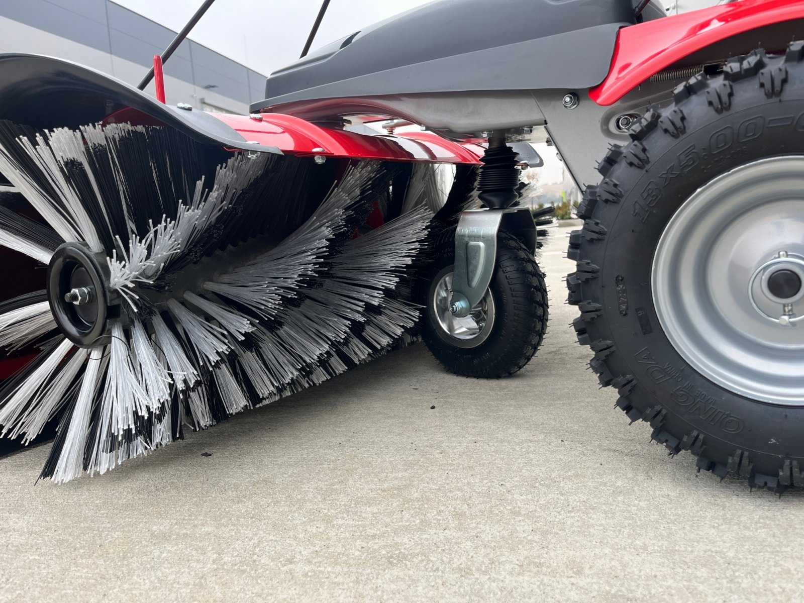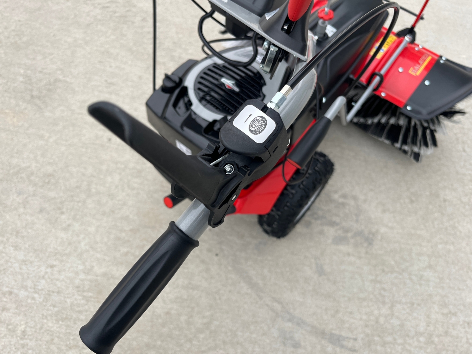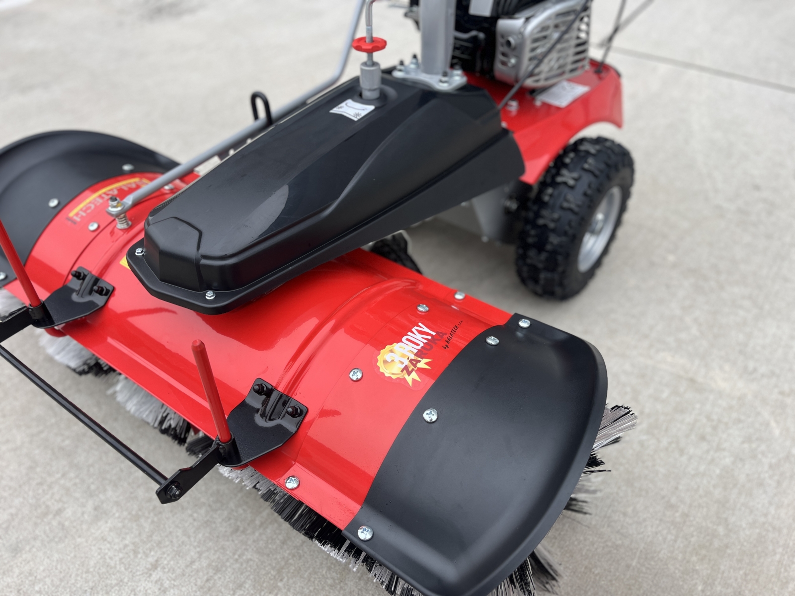 - Ak je jemný sneh, môžete ho pozametať priamo motorizovanou kefou. Ak je sneh už hlbší ako 3-5 cm, jednoducho použite snehový pluh, ktorý je súčasťou dodávky. Dá sa zložiť jednoducho a bez náradia.