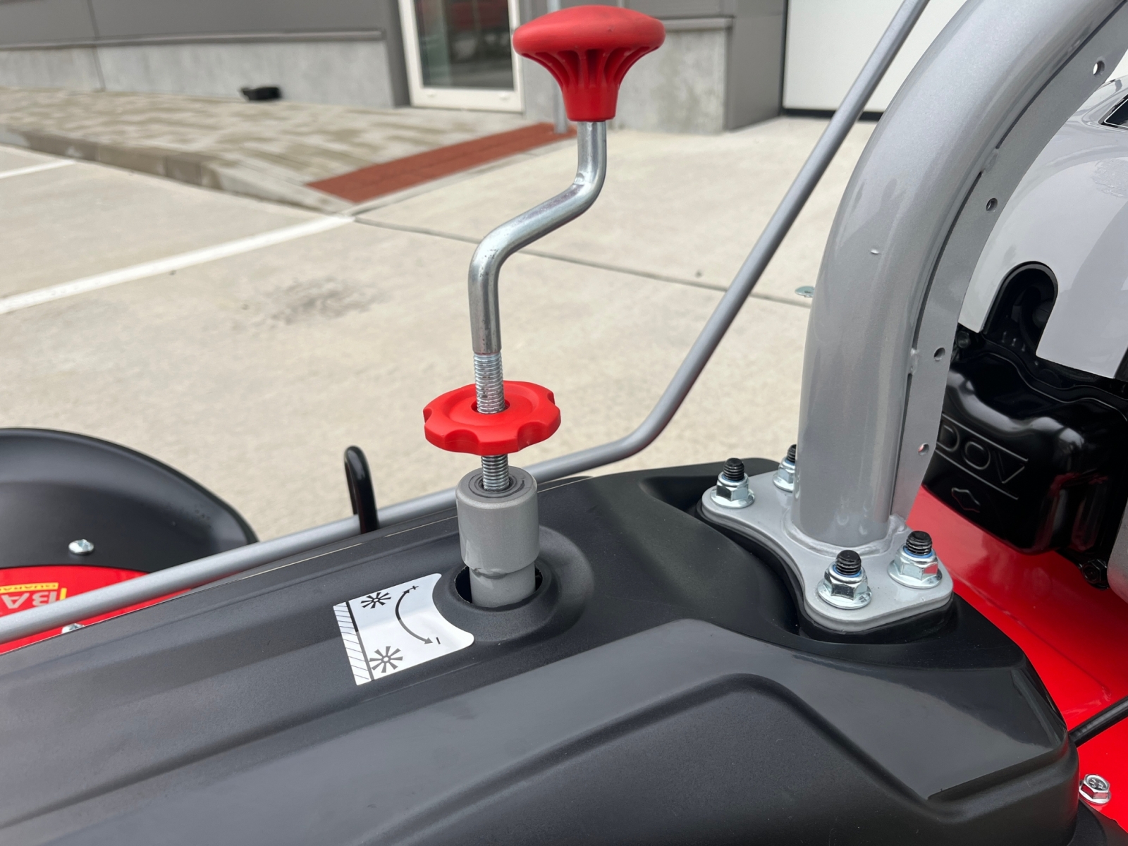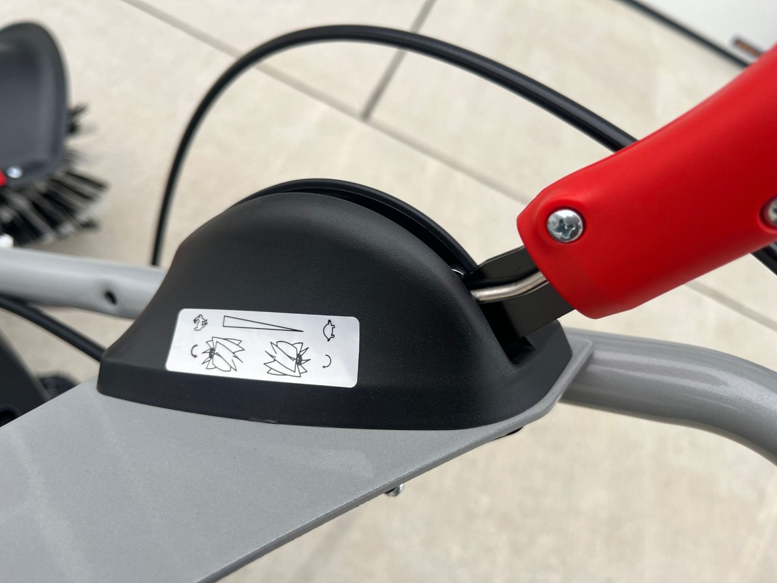 ✓ Výšku a tlak kefy na zem je možné regulovať pomocou centrálne namontovanej rukoväte.