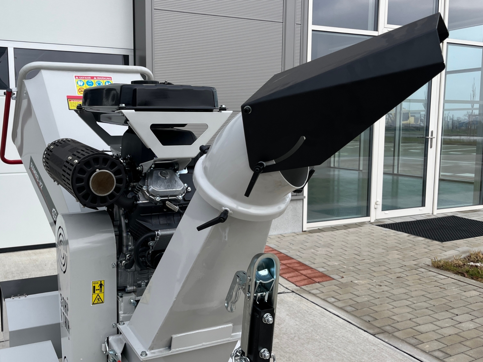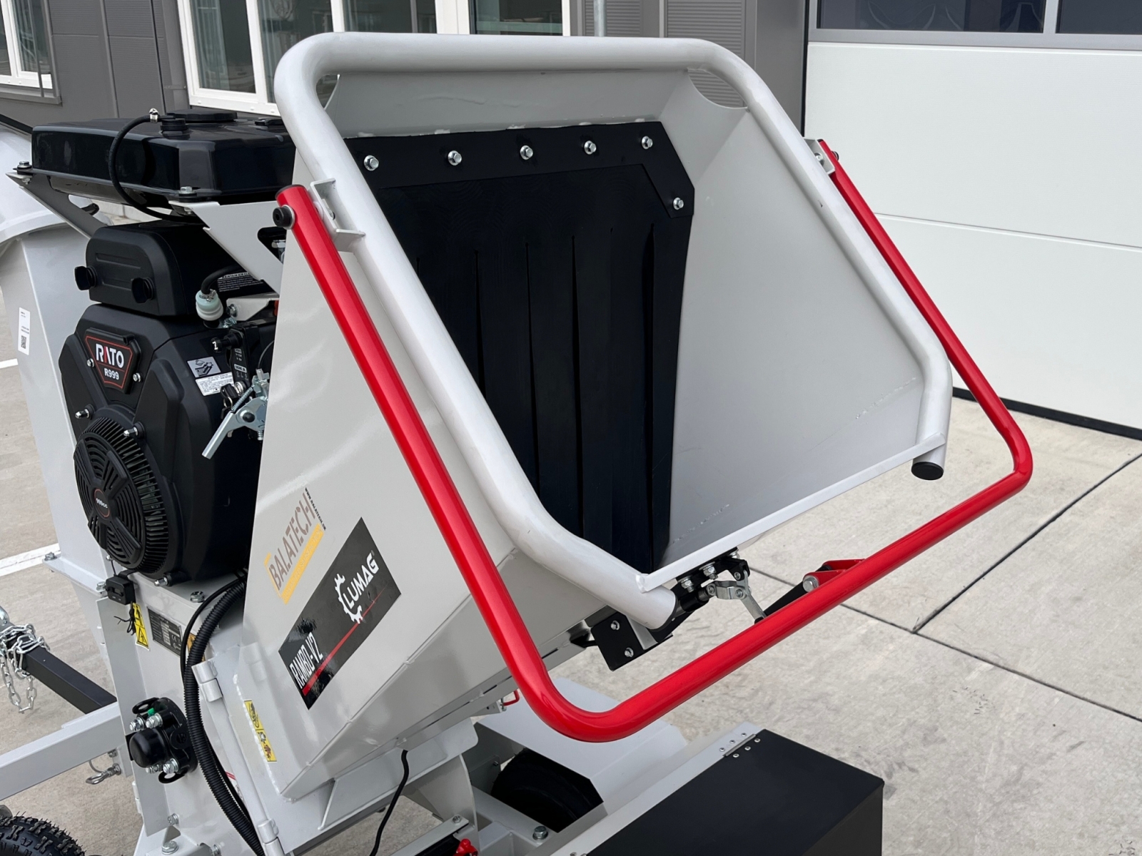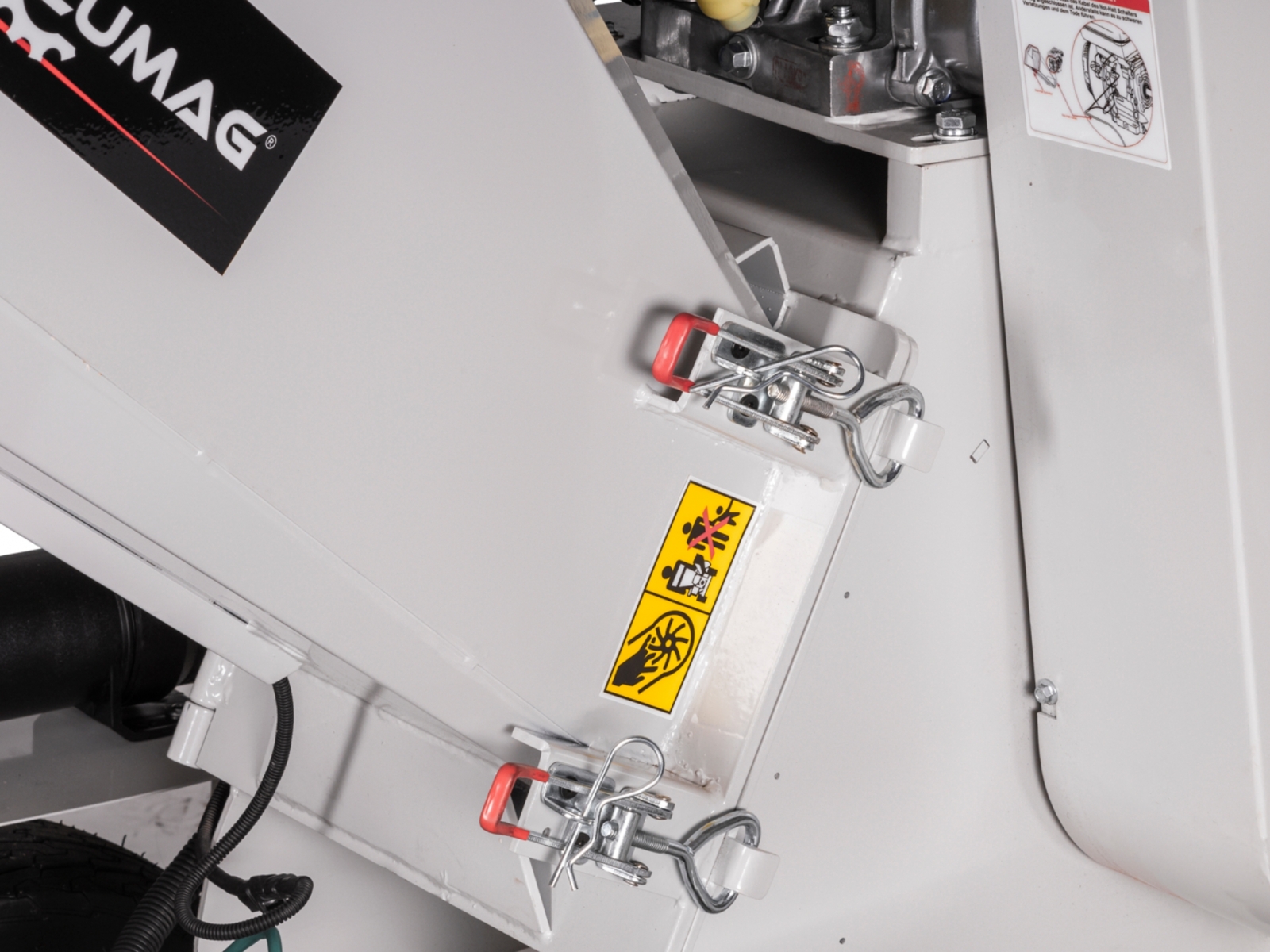 Plniaci zásobník a vyhadzovací komín je možné sklopiť nabok pre jednoduché čistenie.