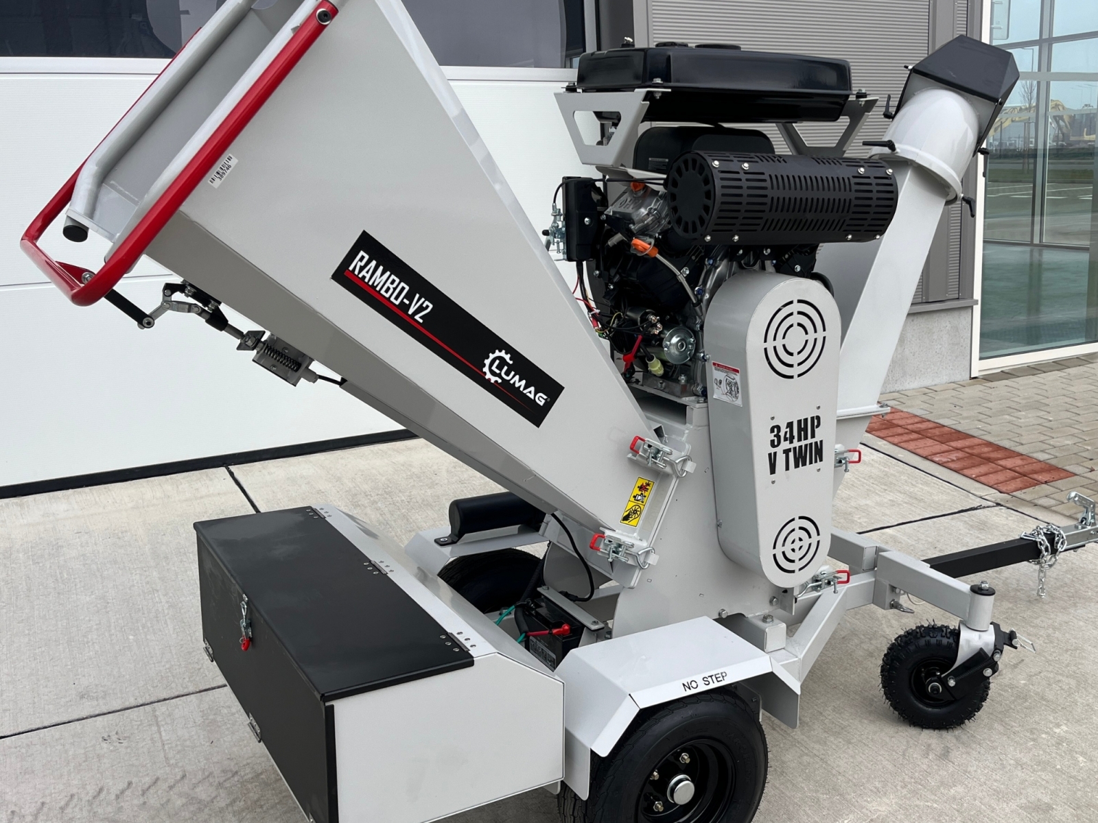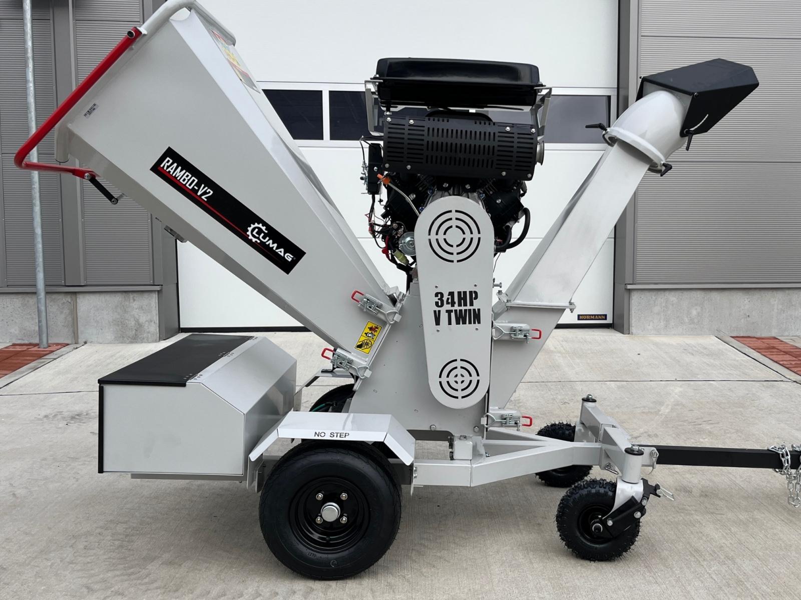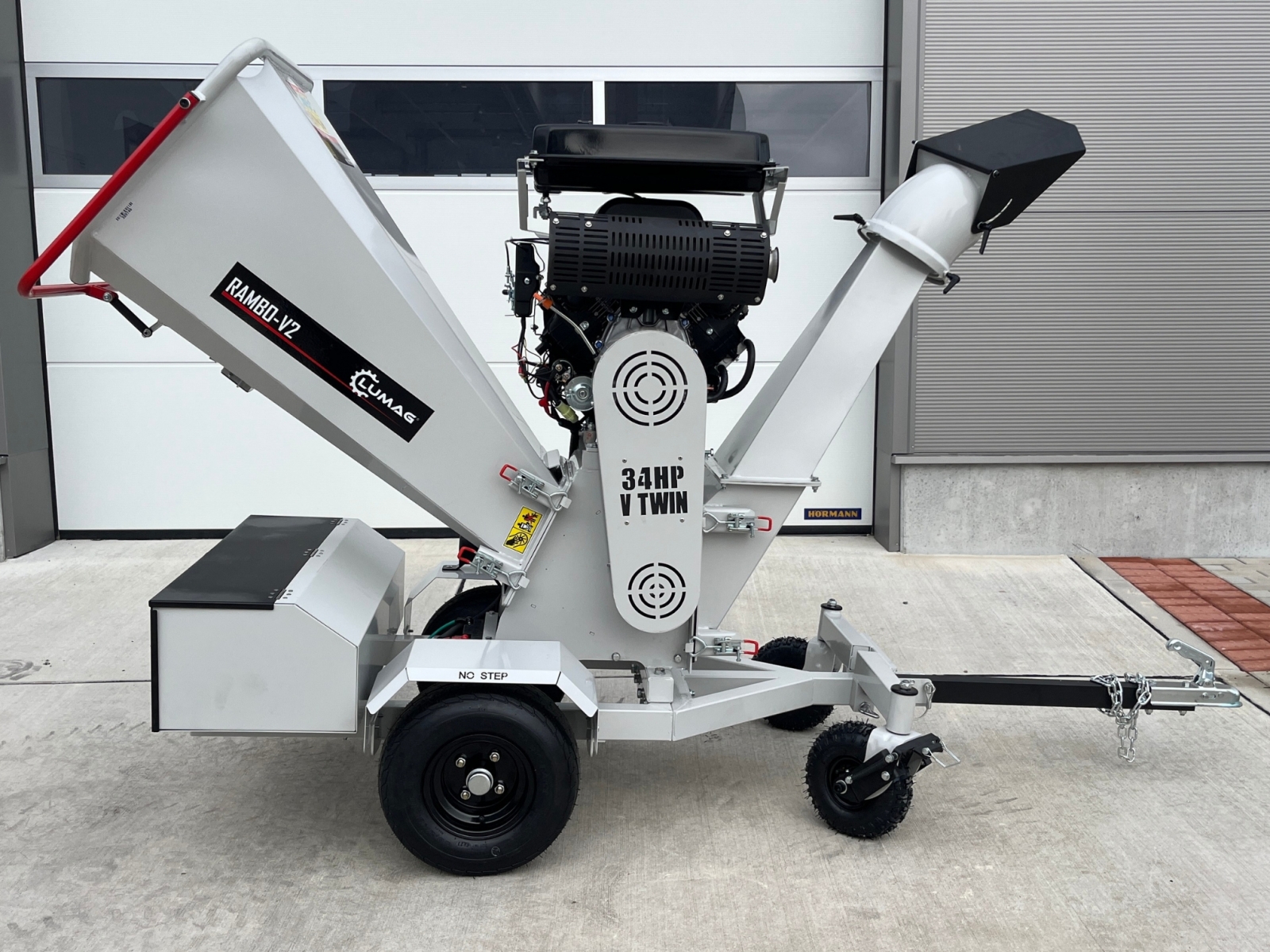 Plniaci zásobník a vyhadzovací komín je možné sklopiť nabok pre jednoduché čistenie.