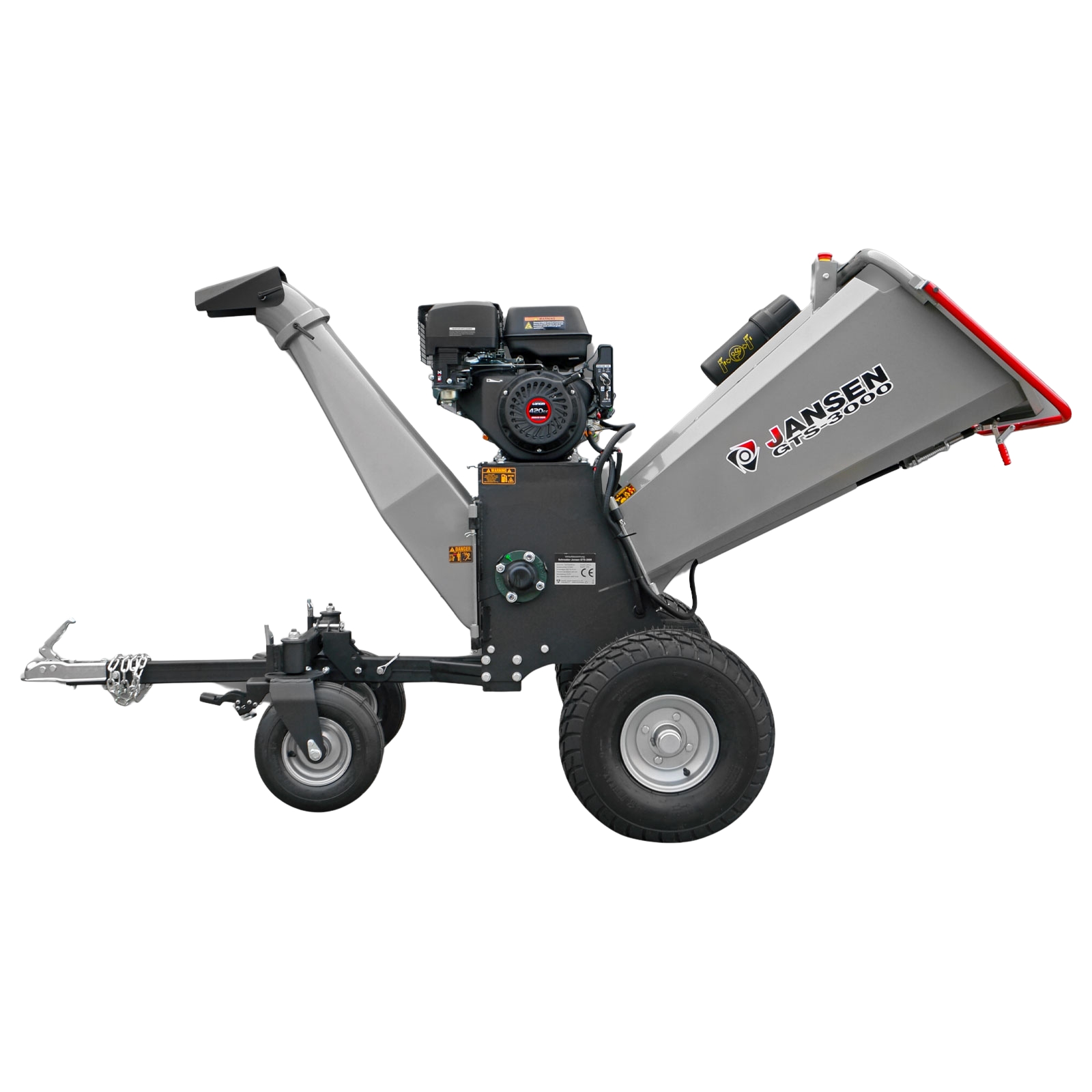 Sofistikovaná kombianácia osvedčenej technológie a inteligentných vylepšení je štiepkovač JANSEN GTS-3000. Vďaka robustnému výkonnému benzínovému LONCIN 15 HP motoru a pohodlnému elektrickému štartovaniu je štiepkovač ideálny pre profi práce.