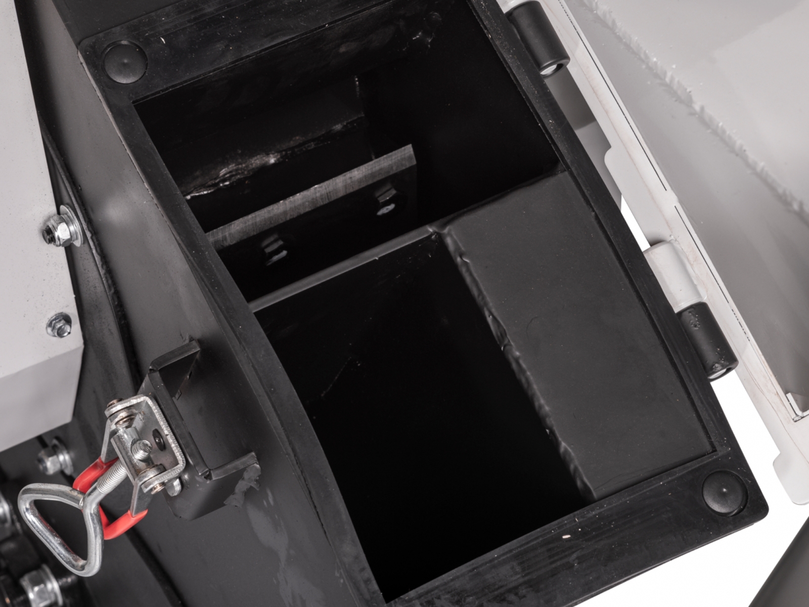 Vstupný a výstupný zásobník sa dajú ľahko sklopiť do strany pre čistenie rezacieho bubna.