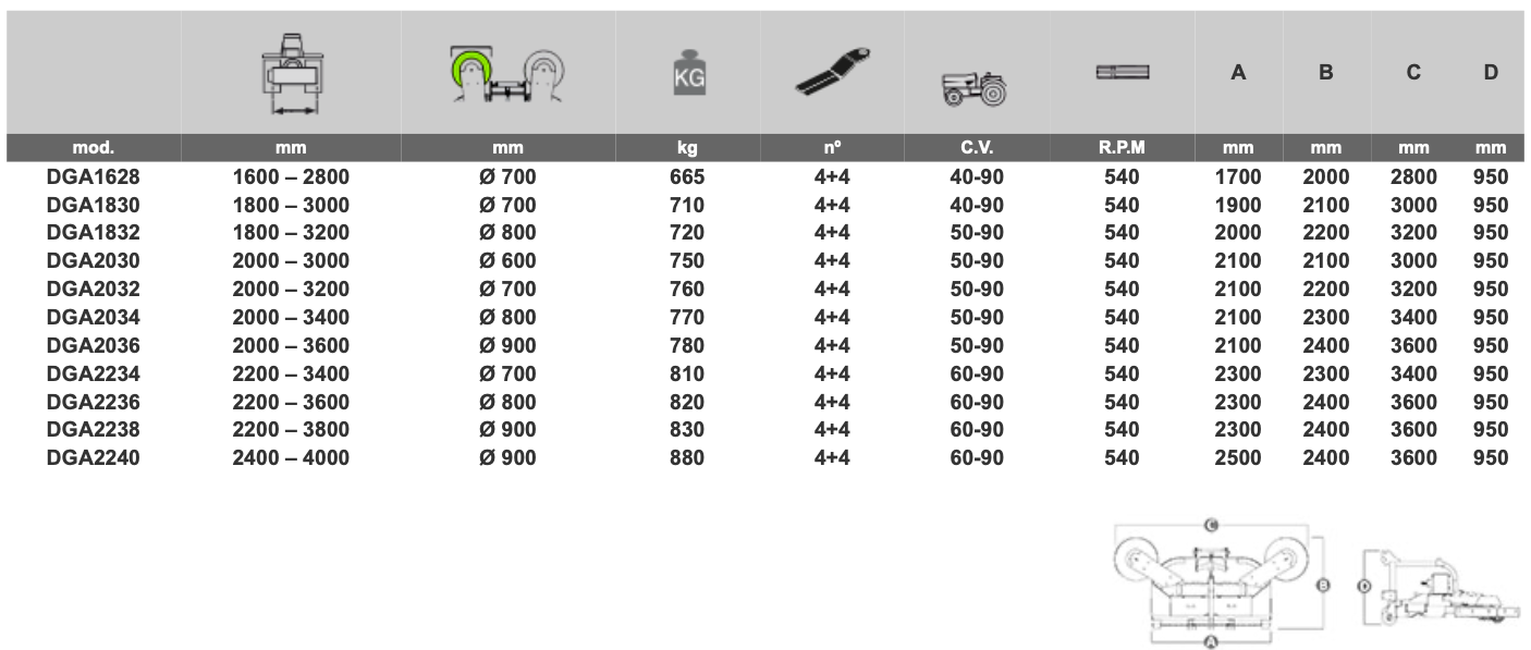 ✓ Zadné dvojčinné valce s pevnou polohou diskov