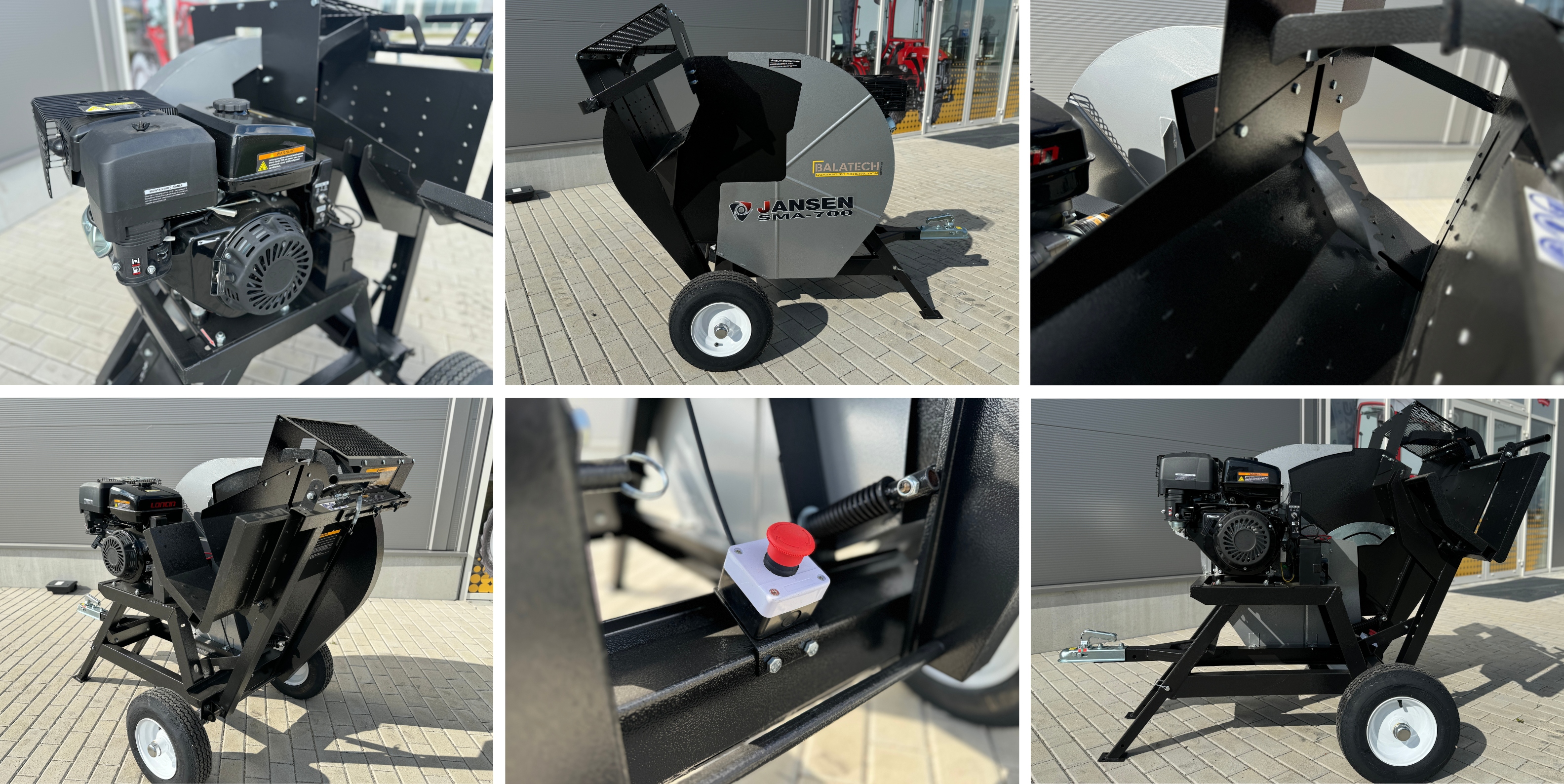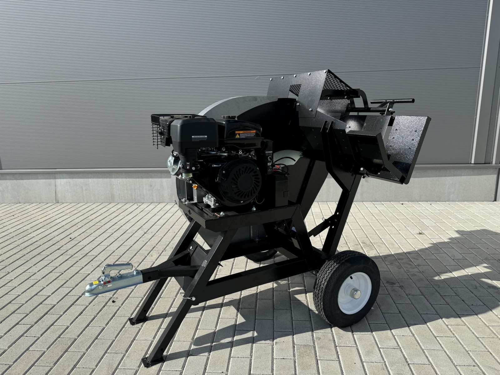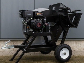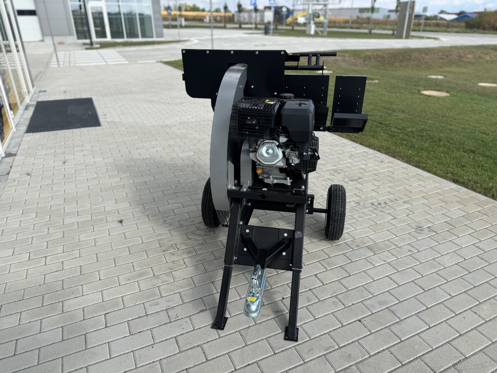 ✓ Má vlastné pneumatiky a oje s guľovou spojkou, preto sa píla môže ľahko prepravovať.