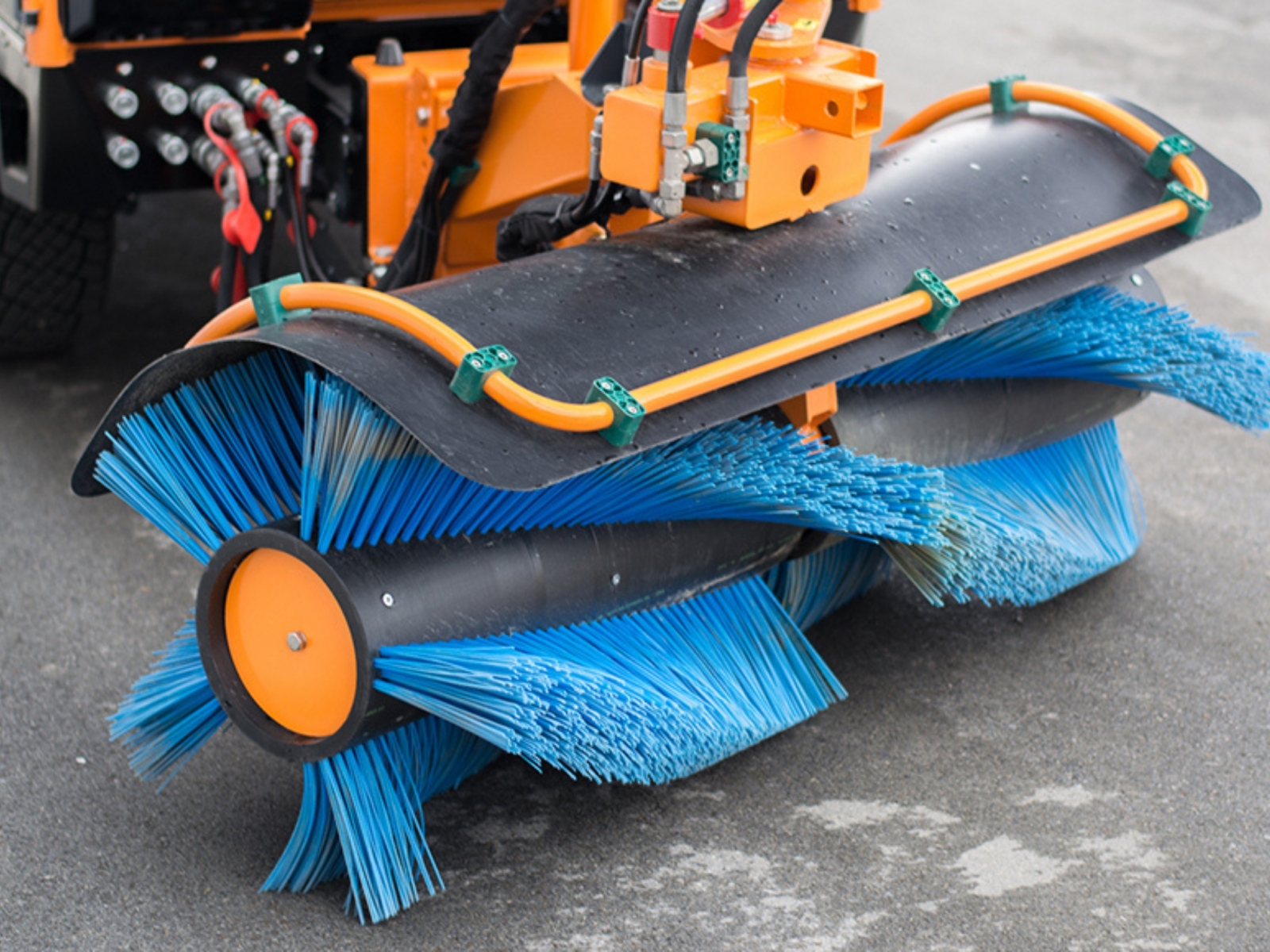 Predná zametacia kefa MKH sa používa na údržbu ciest, chodníkov, parkovísk a iných asfaltových a betónových povrchov po celý rok.