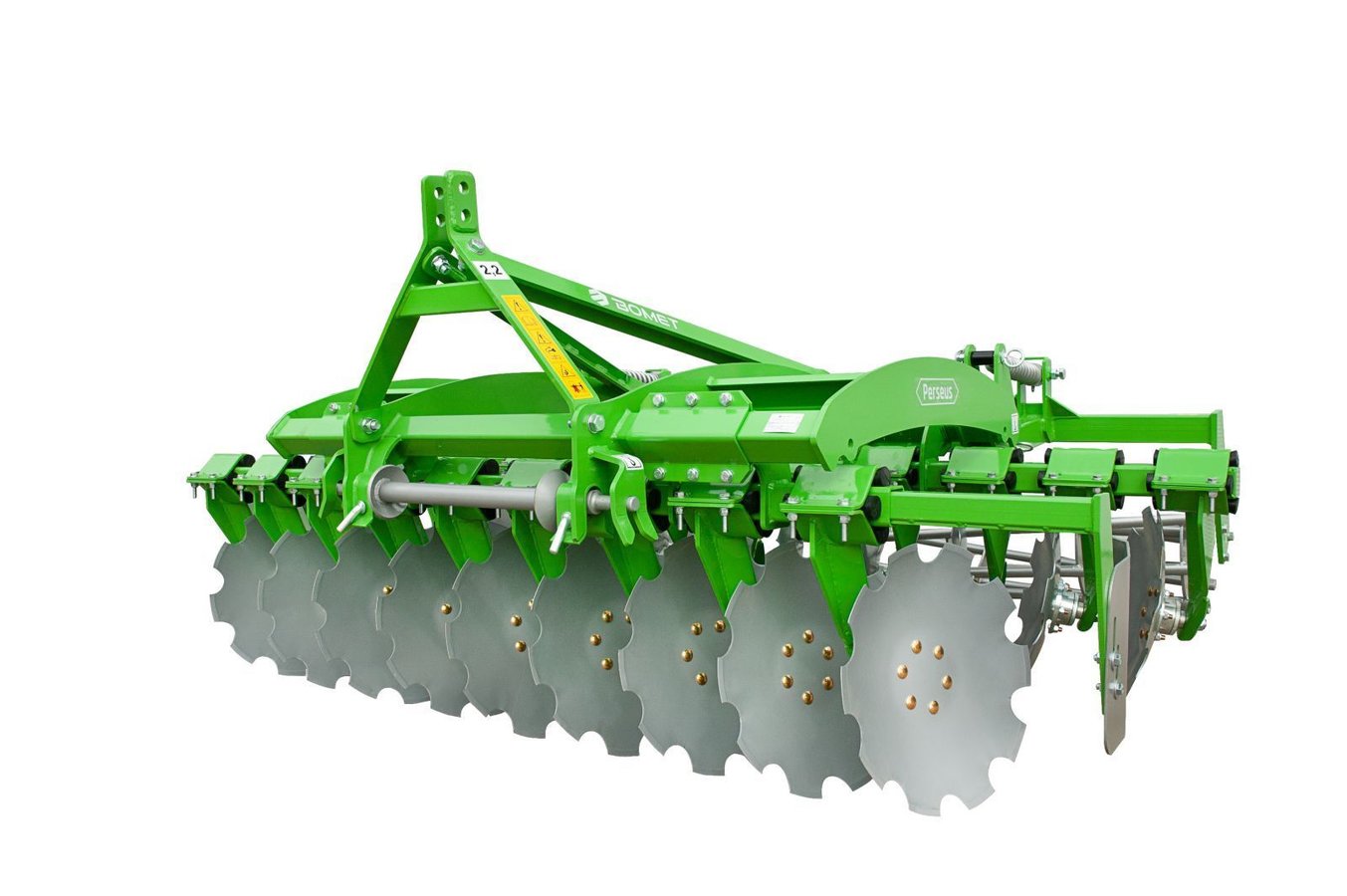Kompaktná disková brána BOMET Perseus je univerzálny stroj, ktorý dobre funguje ako pri kultivácii po orbe, tak aj pri kultivácii bez orby na na stredných, kamenistých pôdach alebo pôdach zarastených porastom určených na mulčovanie.