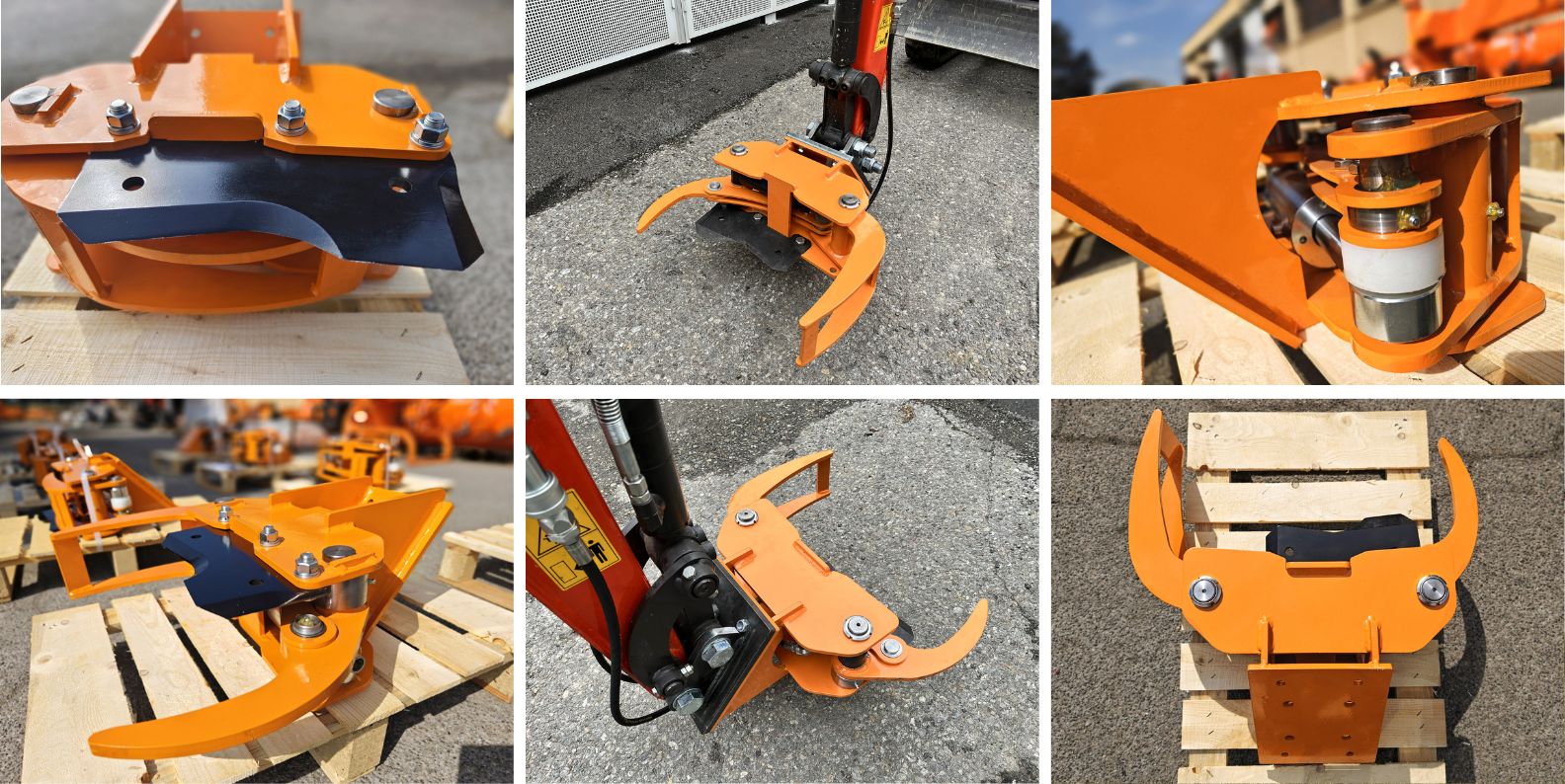 Nožnice sú k dispozícii ako pevné alebo plne otočné o 360 stupňov pomocou hydraulického rotátora na odstraňovanie stromov alebo sekanie spadnutého dreva.