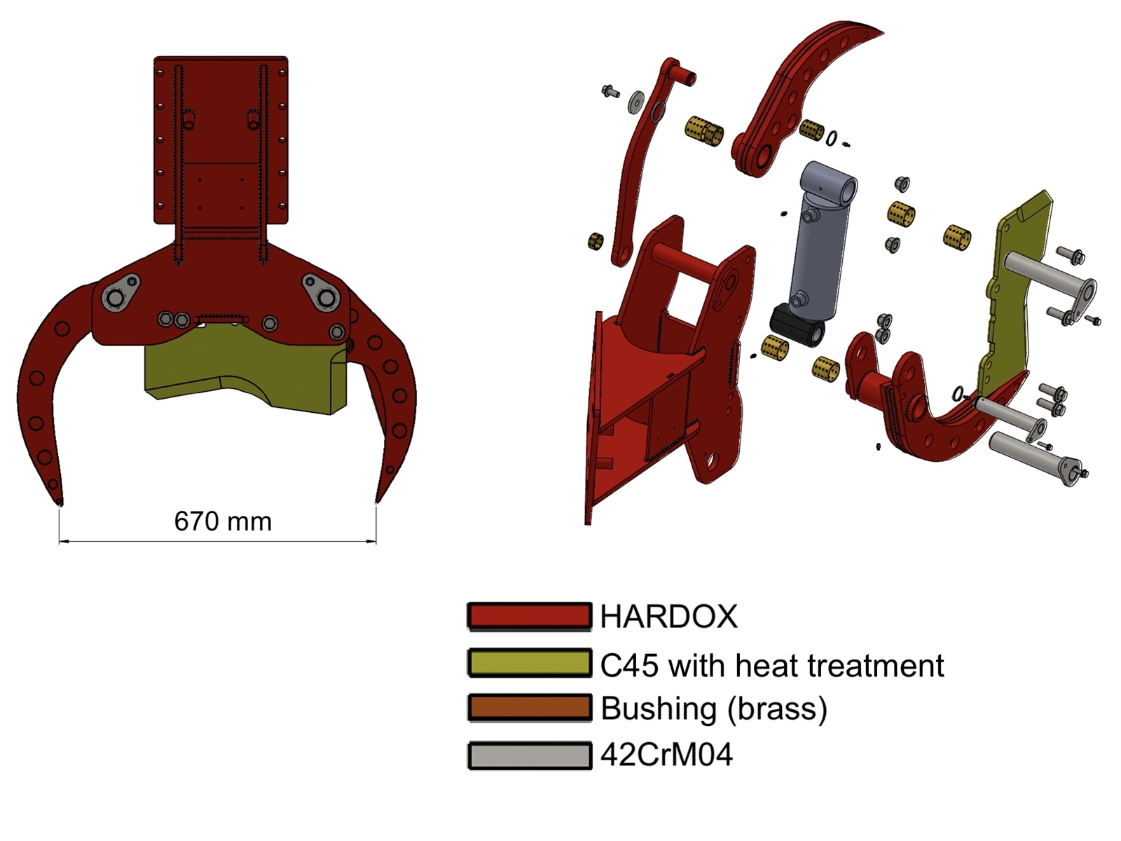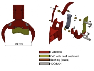 Nožnice sú k dispozícii ako pevné alebo plne otočné o 360 stupňov pomocou hydraulického rotátora na odstraňovanie stromov alebo sekanie spadnutého dreva.