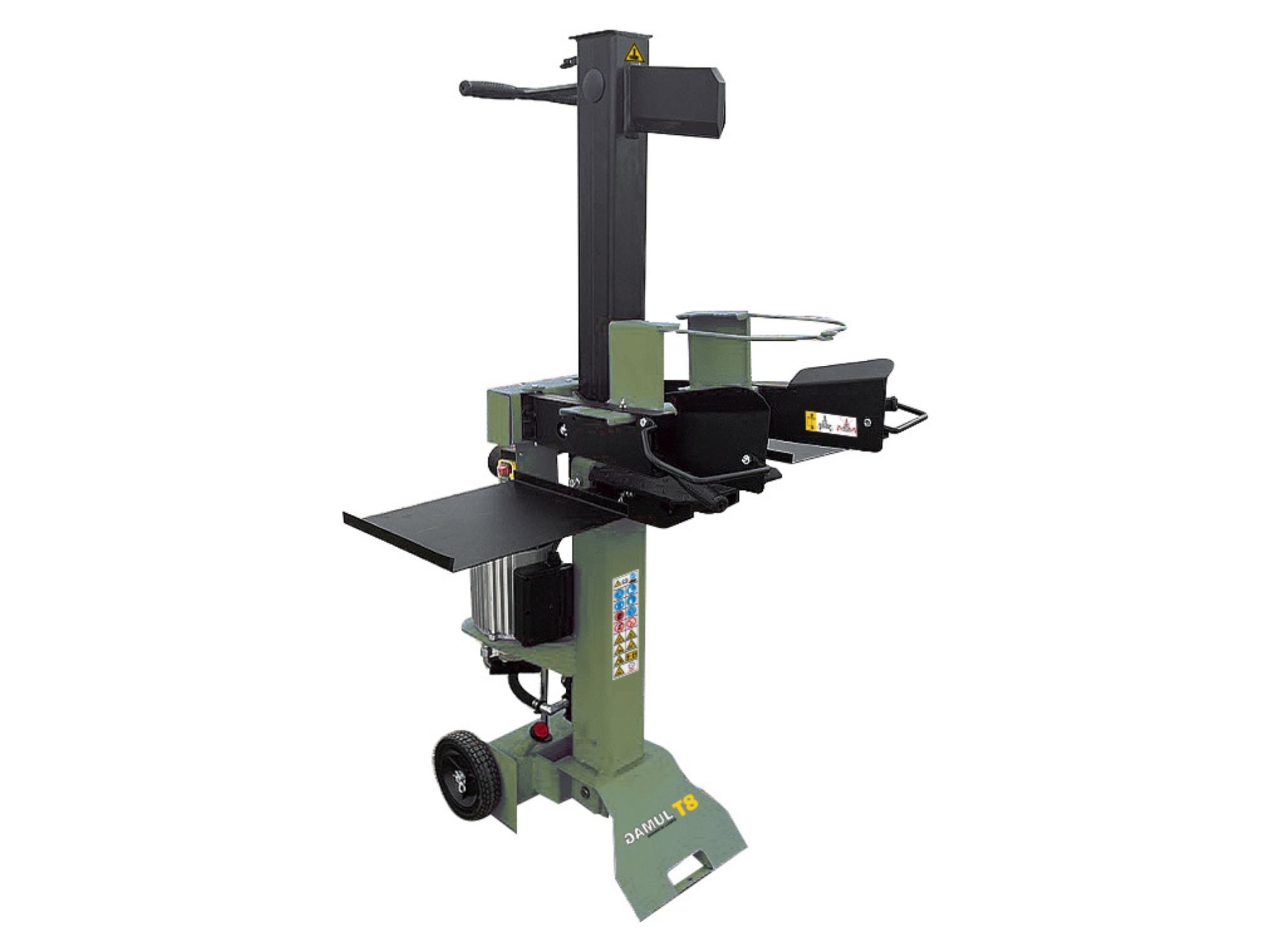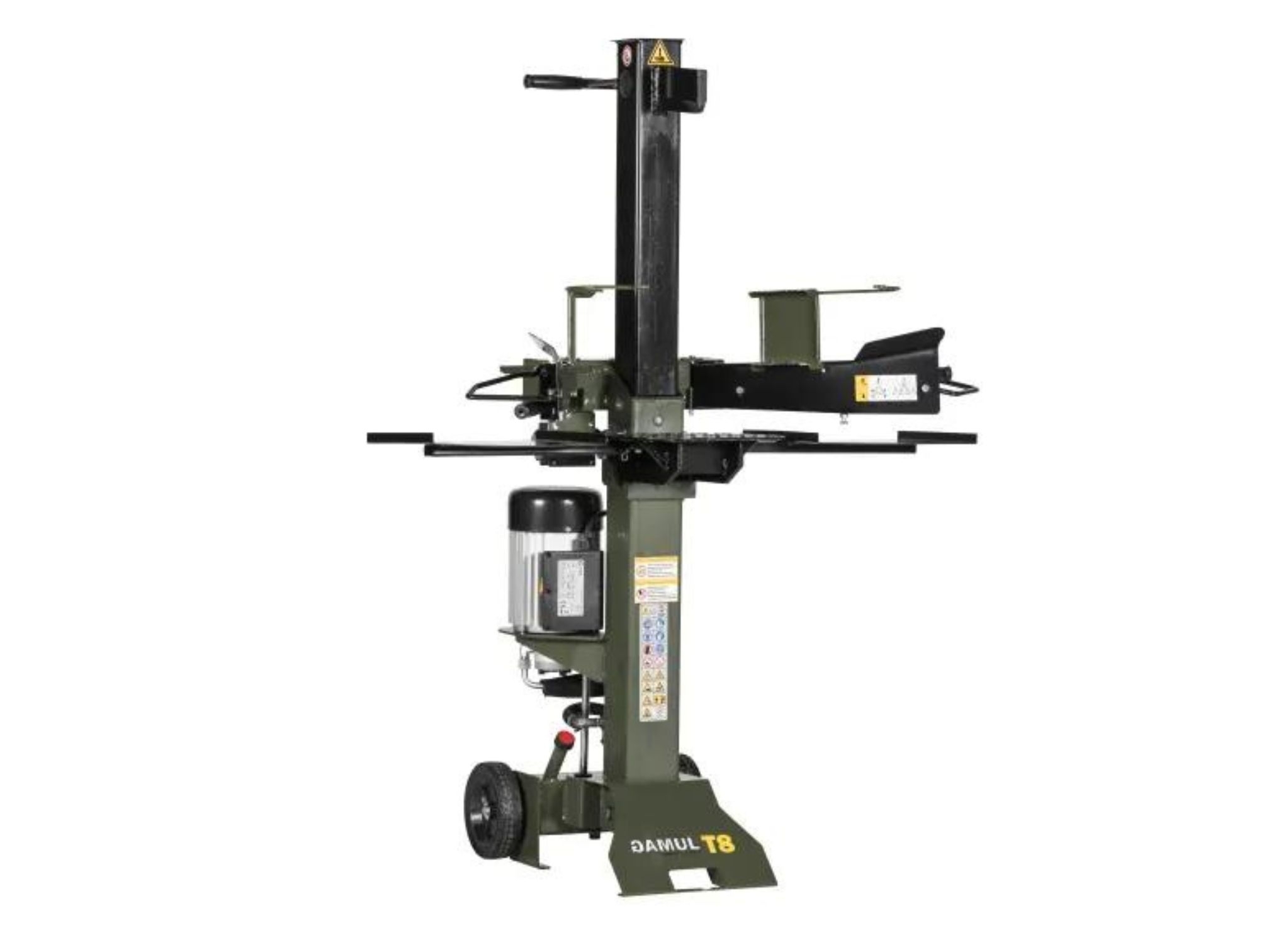Elektrická štiepačka GAMUL T8 vo vertikálnom prevedení s prevádzkovým napätím 230 V a štiepacou silou 8 t. Stabilná robustná konštrukcia.