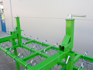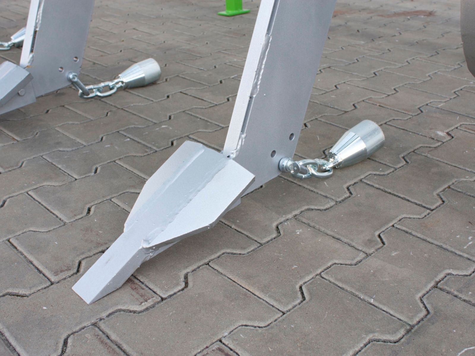 - Stroj môže byť dodatočne vybavený opornými kolesami a pružinovými zubovými bránami. Na určenie pracovnej hĺbky stroja sa používajú oporné kolesá. S ním spolupracujúce pružinové zubové brány hrabú a urovnávajú povrch nadvihnutej pôdy, čím obmedzujú vyparovanie vody z pôdy a urýchľujú vzchádzanie semien zasiatych pri zbere.