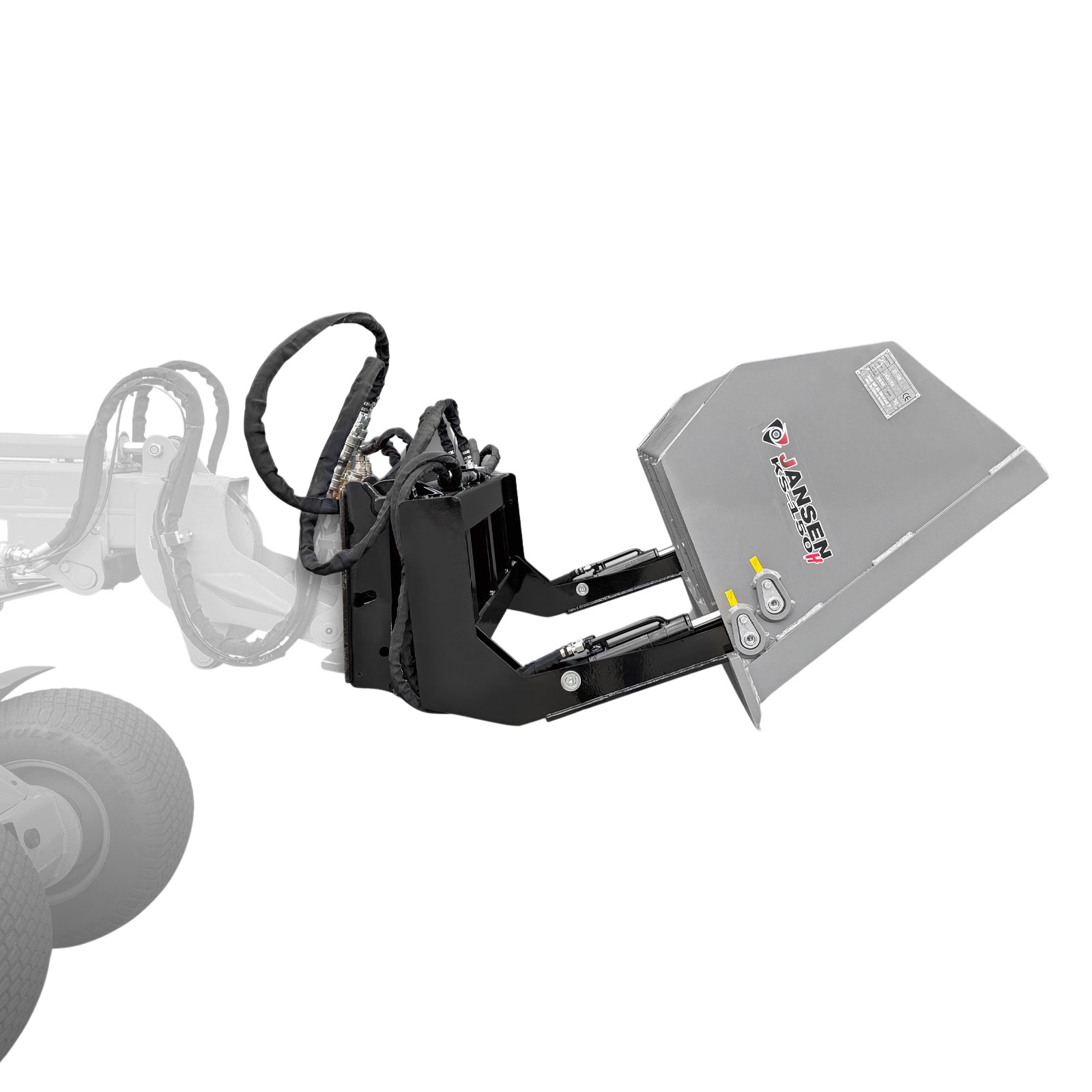 Hydraulická lyžica JANSEN KS-150H so zvýšeným výsypom je ideálnym príslušenstvom pre čelný nakladač pre efektívne a bezpečné premiestňovanie sypkých materiálov. So šírkou 1,50 m a funkciou hydraulického naklápania ponúka táto lopata optimálnu kombináciu výkonu a jednoduchosti použitia. Zvýšením výšky o cca 110 cm je možné naložiť aj prívesy, nákladné autá a kontajnery atď. s ložnou výškou 4 metre.