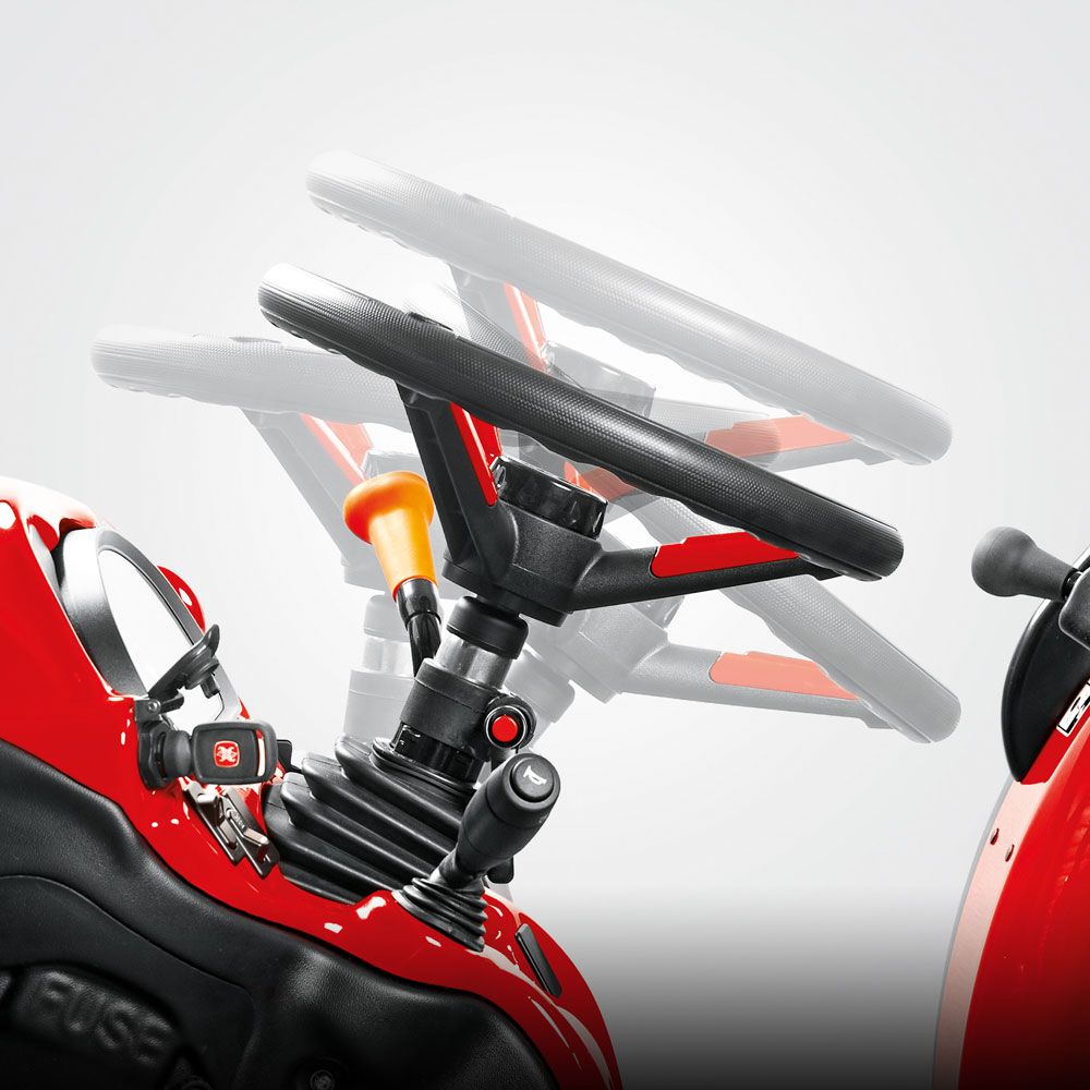 Vďaka krátkemu rázvoru a úzkemu polomeru riadenia je traktor v radoch pre plodiny mimoriadne agilný. Na ďalšie zníženie polomeru otáčania je možné využiť brzdy riadenia *, ktoré zvýrazňujú účinok riadenia dosiahnutý vďaka dvojčinným kĺbom s konštantnou rýchlosťou.