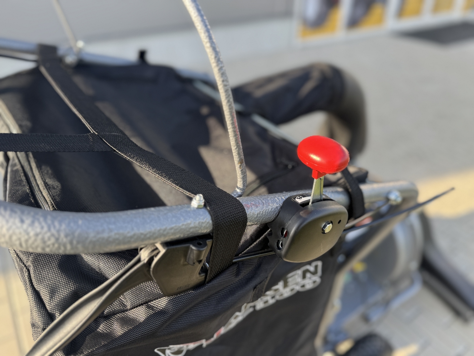 - Výkonný motor, pohon kolies, pracovná šírka 73 cm, rovnako ako centralizovaný mechanizmus nastavenia výšky a veľký zberný kôš.