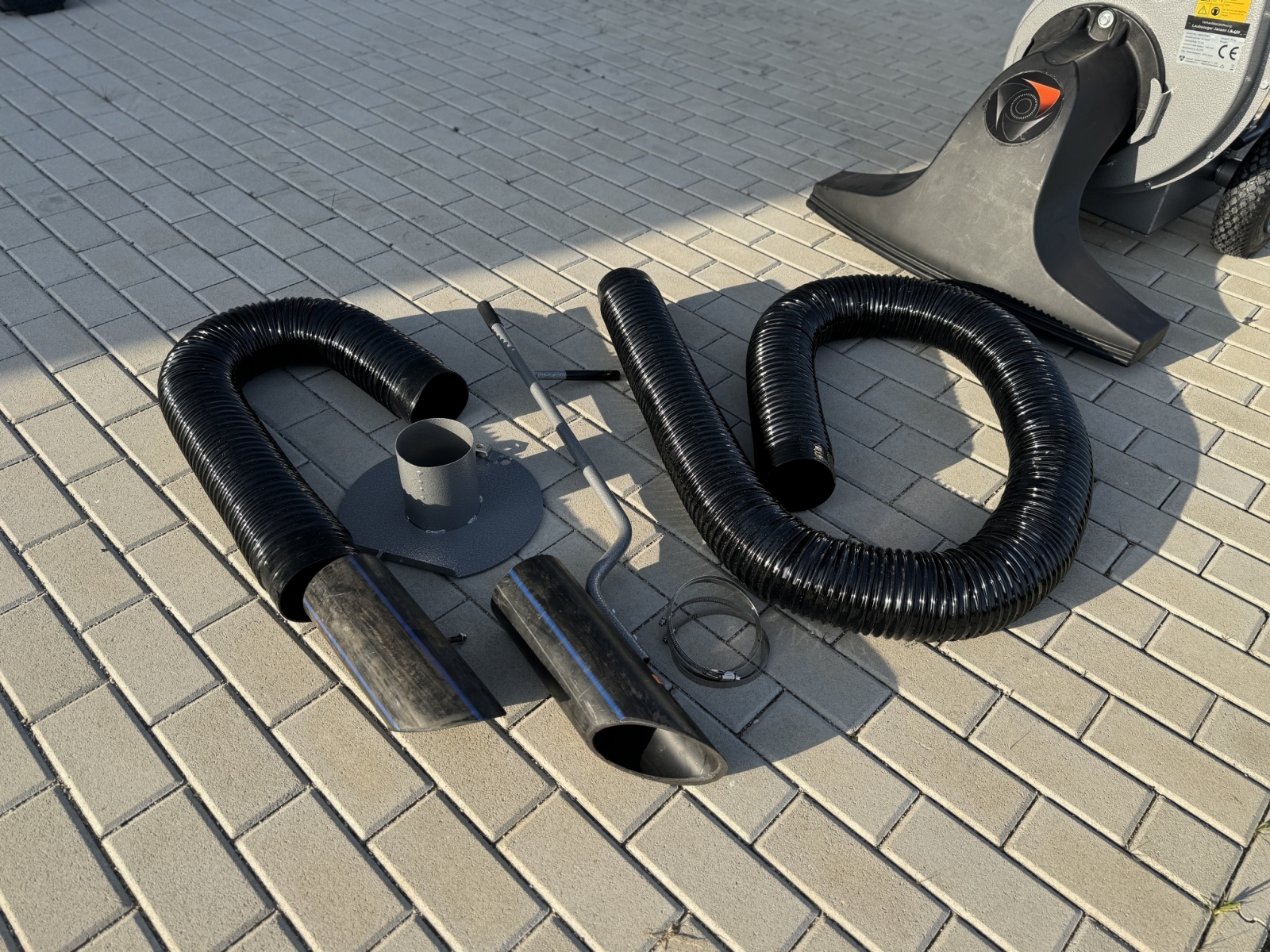 ✓ LS-100 sa štandardne dodáva so zberným košom a sacou hadicou dlhou 3 metre a ďalšou hadicovou prípojkou na fúkanie lístia (Ø 110 mm).