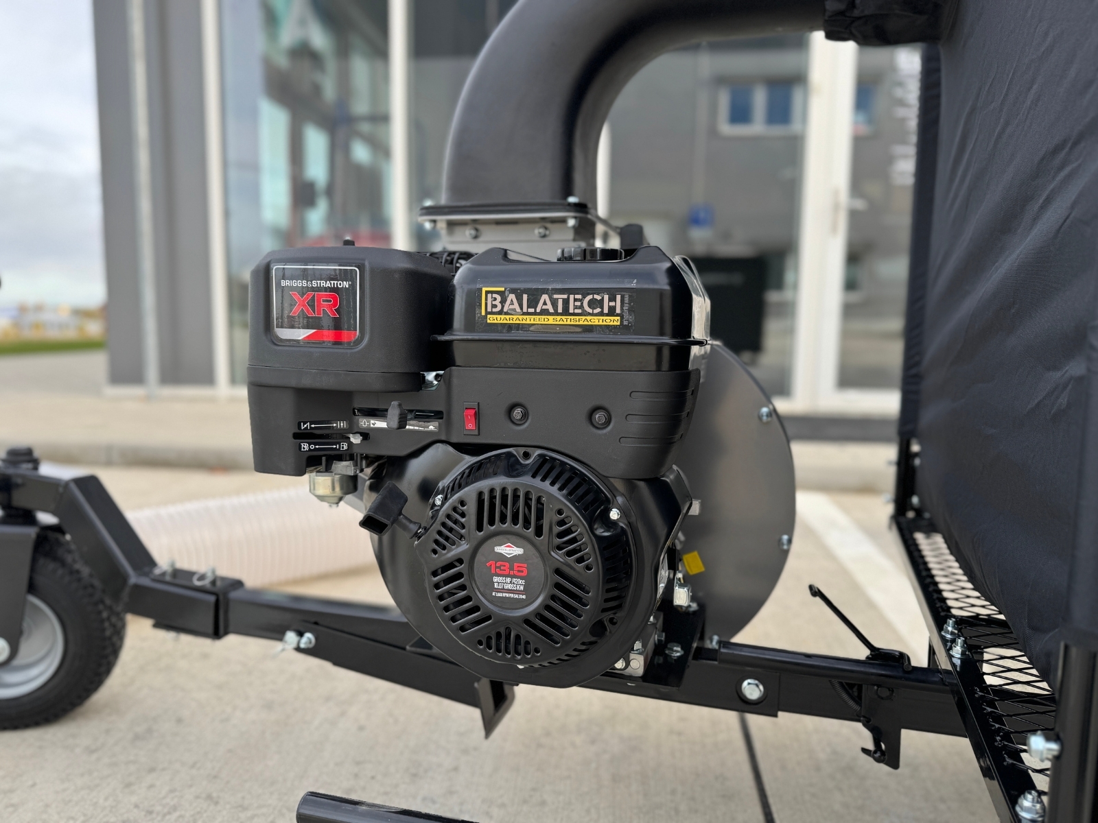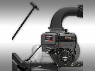 - Spoľahlivý a výkonný benzínový motor s výkonom 13 HP poháňa výkonné koleso turbíny, ktoré je umiestnené v stabilnom kryte.