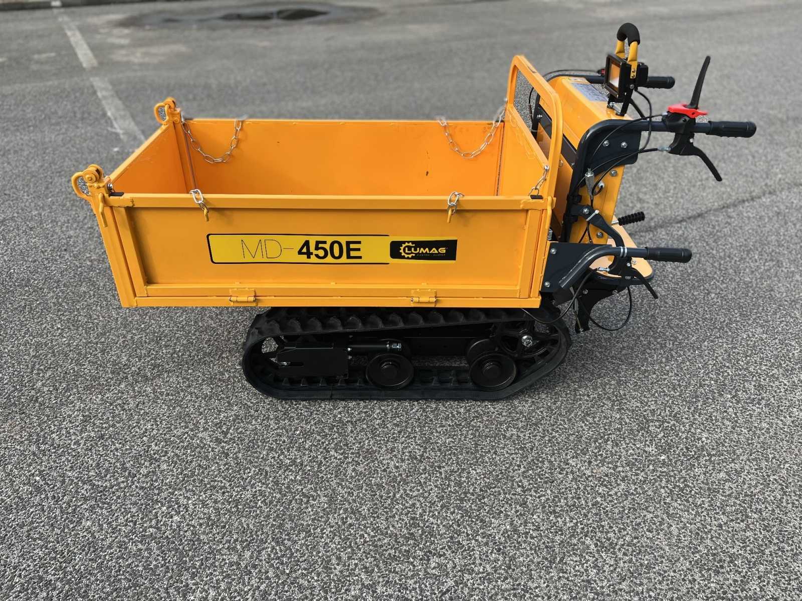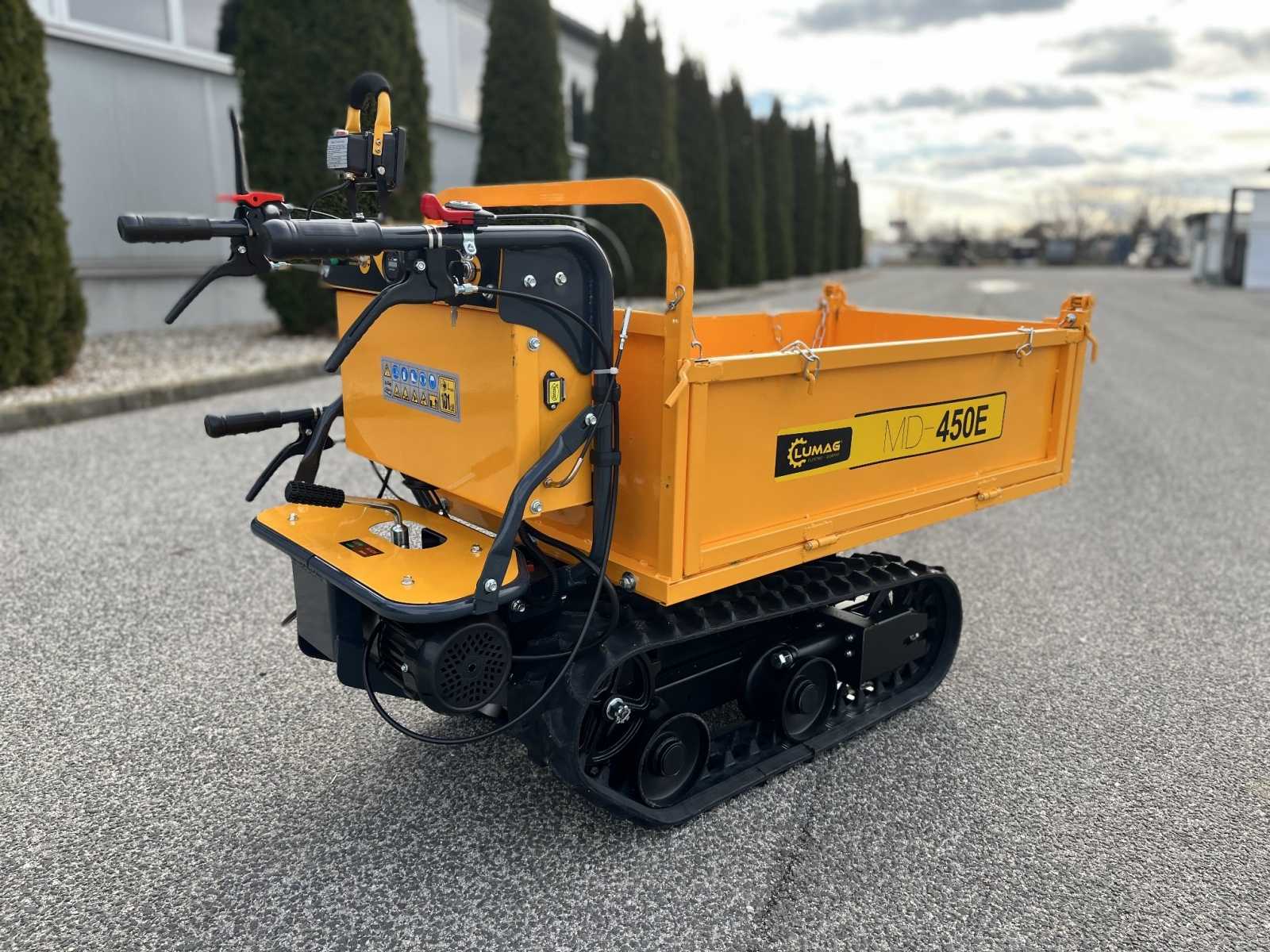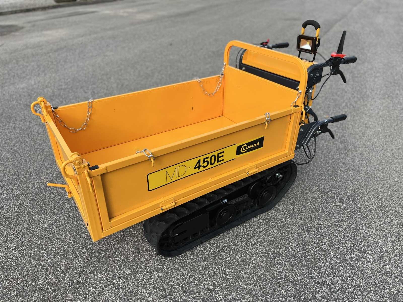 ✓ Všestranný tichý ekologický elektrický minidumper Lumag MD-450E je ideálny pomocník, pre všetky prepravné práce v rôznych odvetviach a pre širokú škálu činností. ✓ Zvládne prepraviť až 450 kg nákladu. ✓ Náklad sa vykladá pomocou manuálne výklopnej korby. ✓ 60 V nabíjačka a sada batérií (5 x 12 V, 20 Ah) sú súčasťou dodávky. ✓ Vrátane LED reflektora, umožňujúceho prácu za šera.