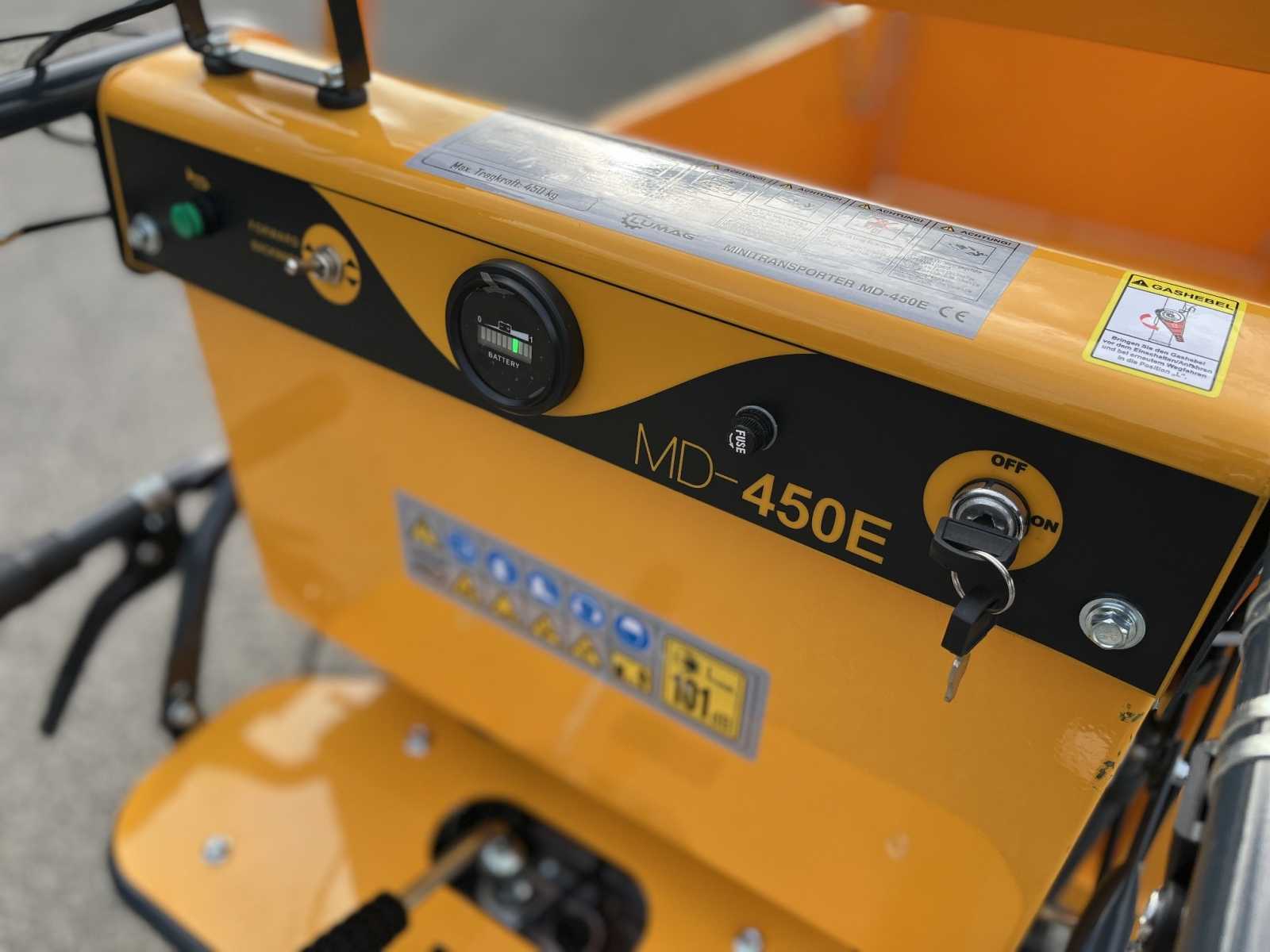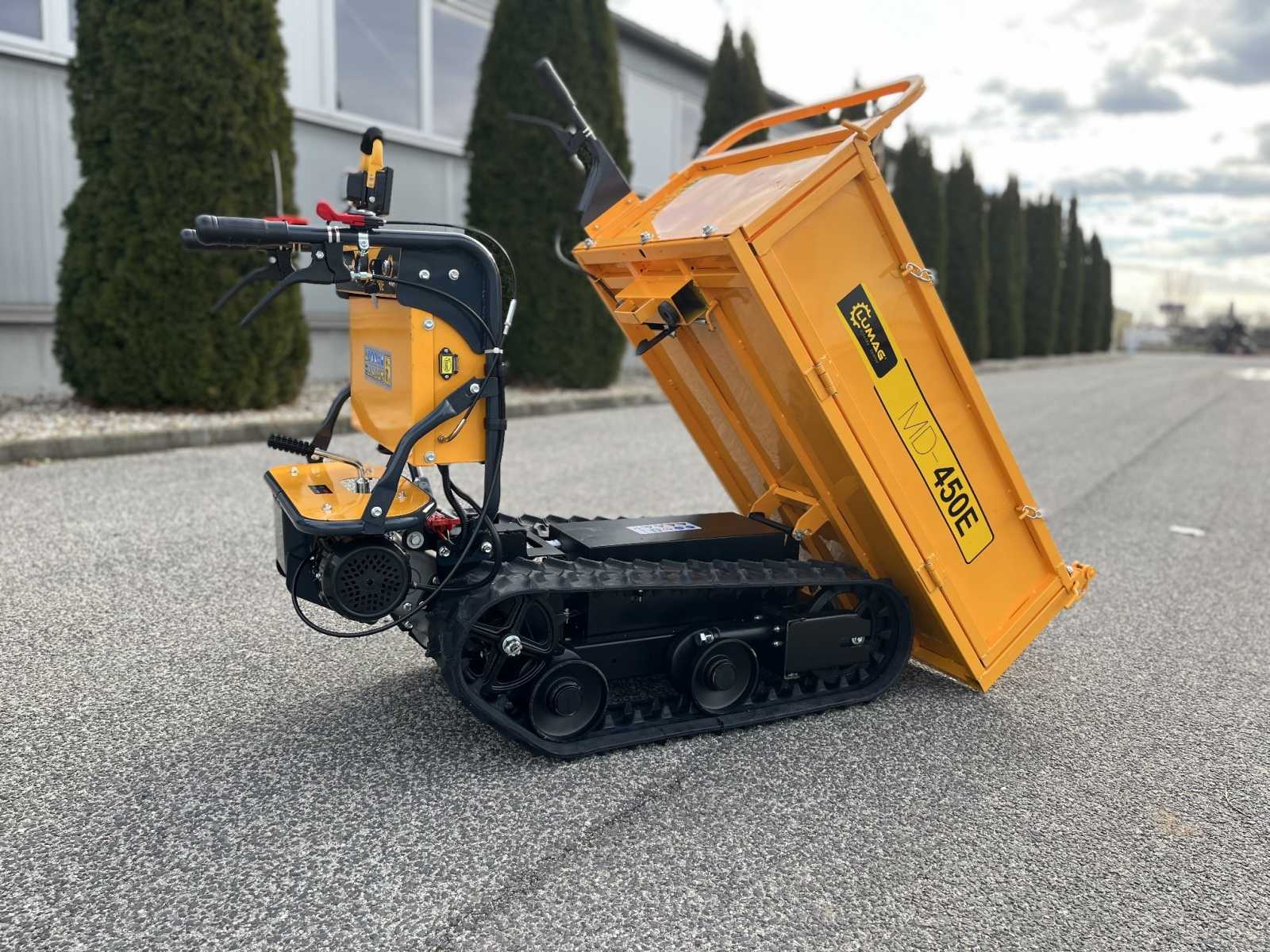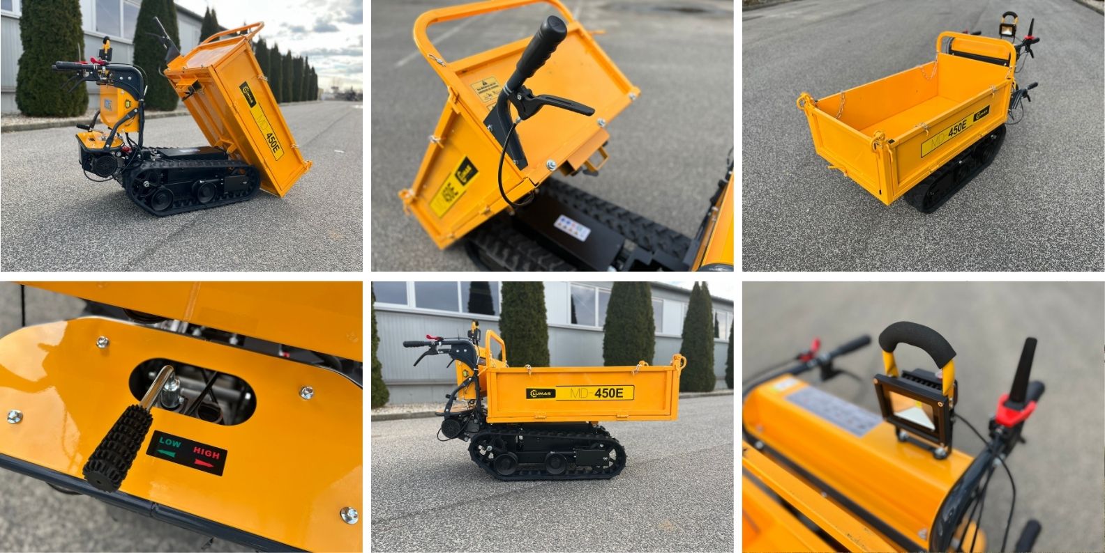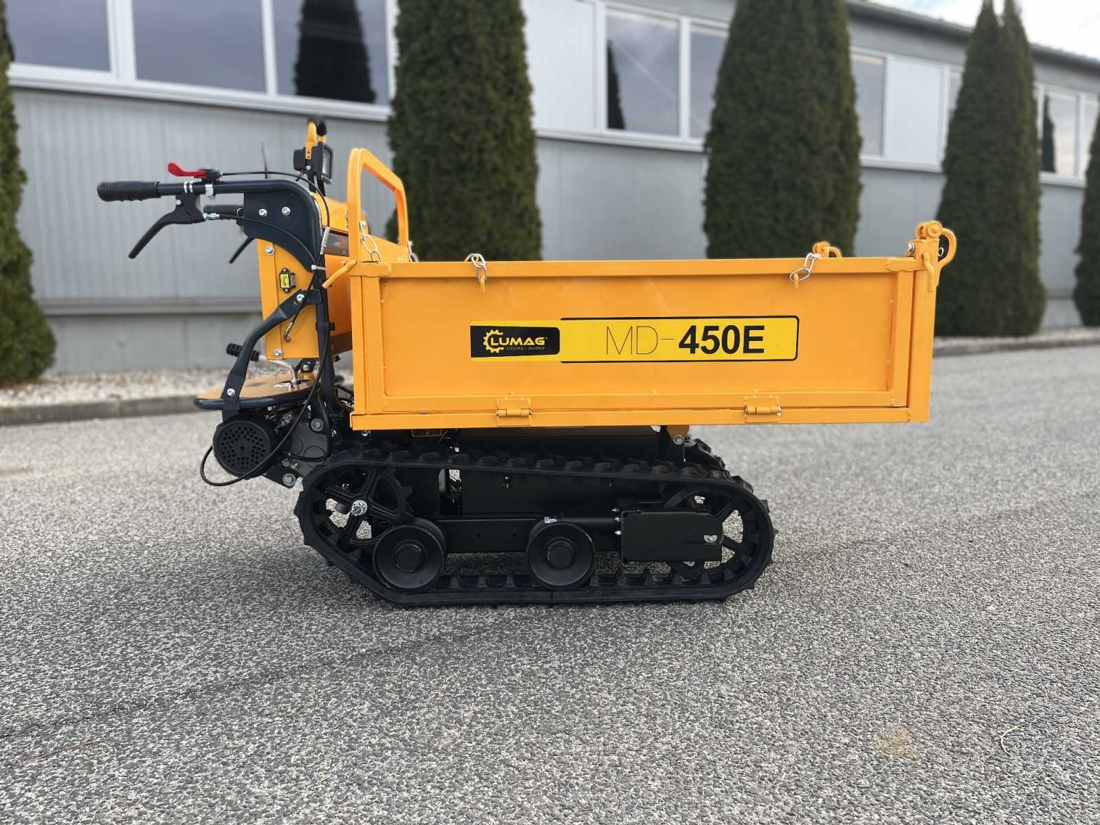 ✓ Všestranný tichý ekologický elektrický minidumper Lumag MD-450E je ideálny pomocník, pre všetky prepravné práce v rôznych odvetviach a pre širokú škálu činností. ✓ Zvládne prepraviť až 450 kg nákladu. ✓ Náklad sa vykladá pomocou manuálne výklopnej korby. ✓ 60 V nabíjačka a sada batérií (5 x 12 V, 20 Ah) sú súčasťou dodávky. ✓ Vrátane LED reflektora, umožňujúceho prácu za šera.