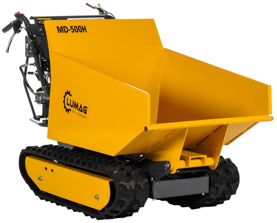 ✓ Všestranný benzínový pásový minidumper Lumag MD 500H je ideálny pomocník, pre všetky prepravné práce v rôznych odvetviach a pre širokú škálu činností. ✓ Zvládne prepraviť až 500 kg nákladu. ✓ Náklad sa vykladá pomocou hydraulickej vyklápacej korby. ✓ Konštrukcia z masívnej ocele a výkonný hydraulický valec v kombinácii s užívateľsky príjemným ovládaním.