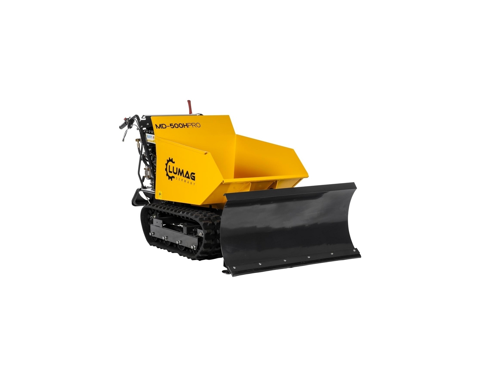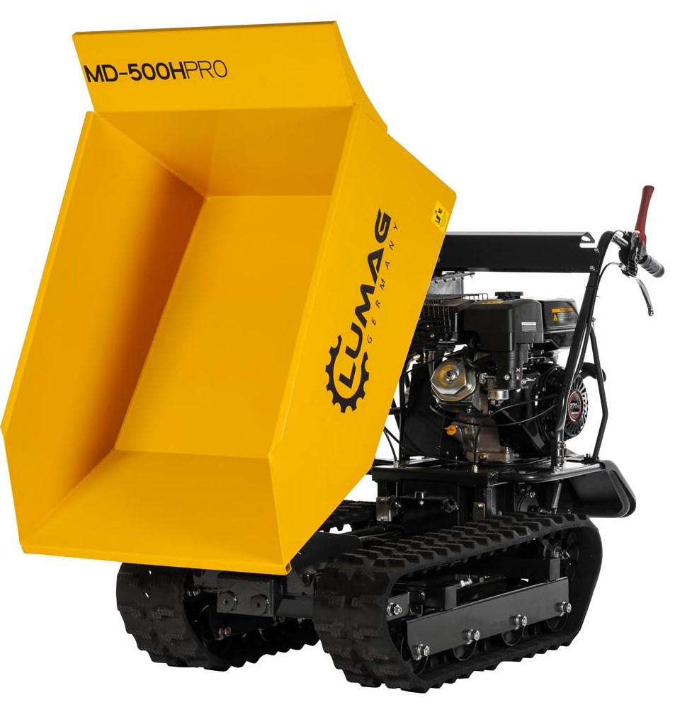 ✓ Všestranný benzínový pásový minidumper LUMAG MD 500HPRO je ideálny pomocník, pre všetky prepravné práce v rôznych odvetviach a pre širokú škálu činností. ✓ Zvládne prepraviť až 500 kg nákladu. ✓ Náklad sa vykladá pomocou hydraulickej vyklápacej korby. ✓ Konštrukcia z masívnej ocele a výkonný hydraulický valec v kombinácii s užívateľsky príjemným ovládaním. ✓ Inovatívna prevodovka vyrobená v Japonsku.