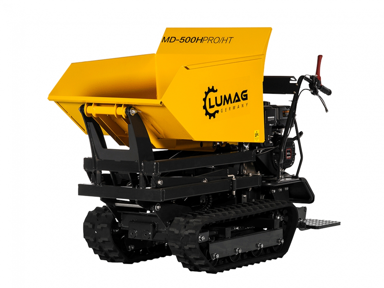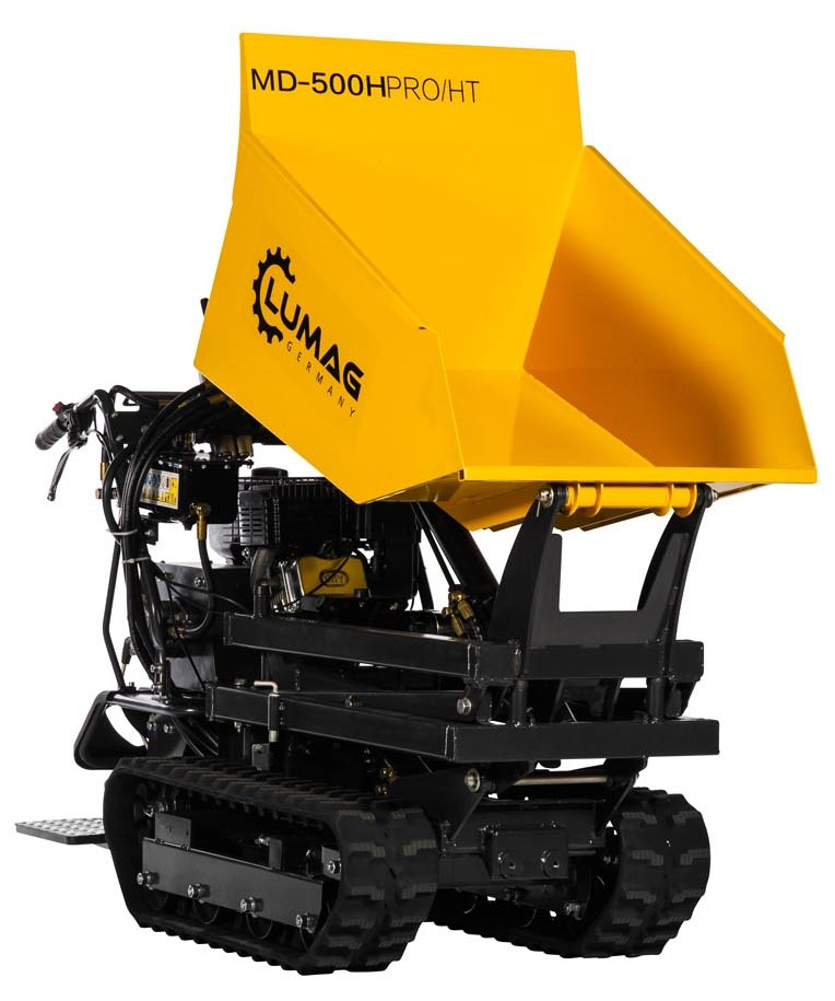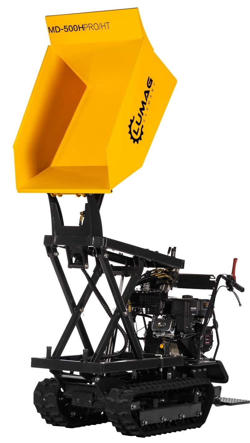 ✓ Všestranný benzínový pásový minidumper LUMAG MD 500HPROHT je ideálny pomocník, pre všetky prepravné práce v rôznych odvetviach a pre širokú škálu činností. ✓ Zvládne prepraviť až 500 kg nákladu. ✓ Náklad sa vykladá pomocou hydraulickej vyklápacej korby až do uhla 90°. ✓ Funkcia vysokého výsypu umožňuje jednoduché vykladanie korby v rôznych pracovných výškach. ✓ Konštrukcia z masívnej ocele a výkonný hydraulický valec v kombinácii s užívateľsky príjemným ovládaním.