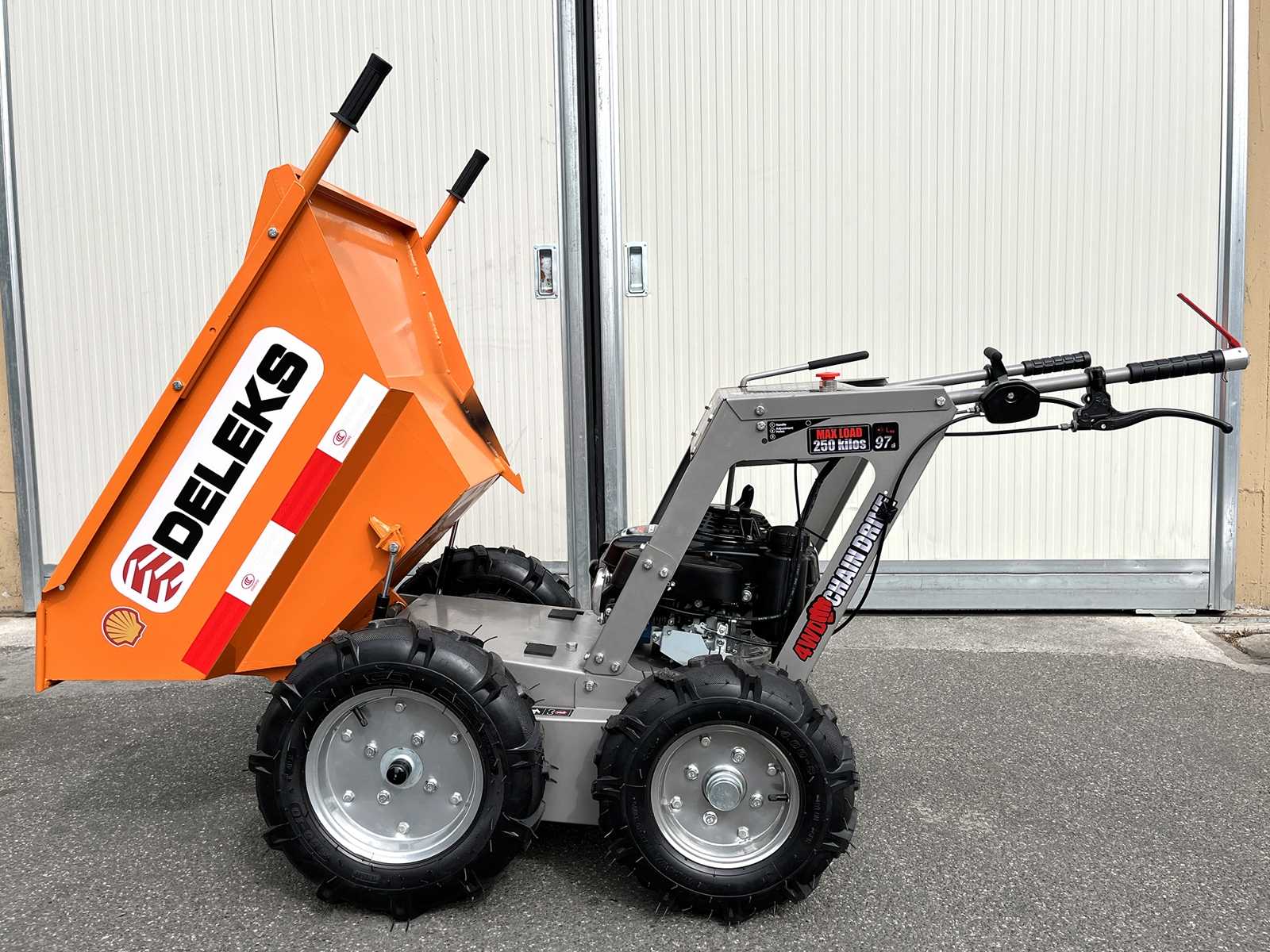 Tento výkonný minidumper je poháňaný motorom Briggs & Stratton s výkonom 6,5 HP.