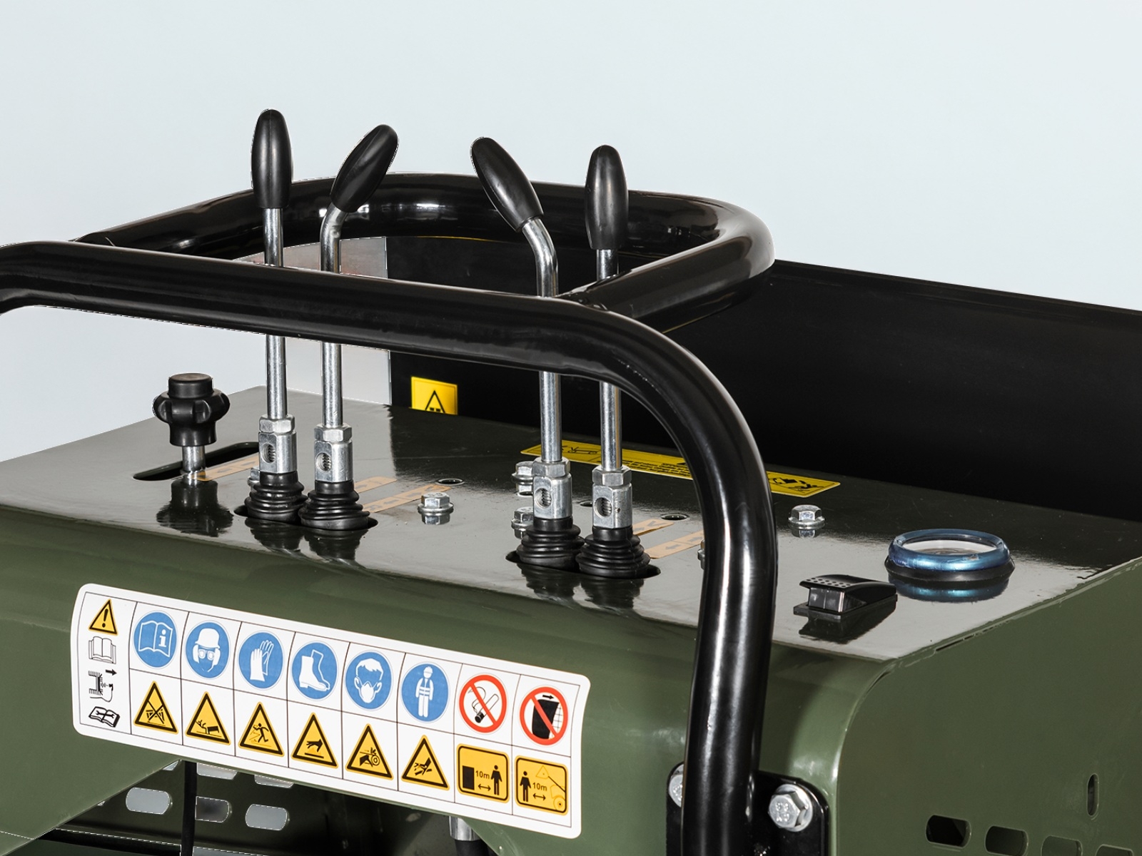 Benzínový minidumper GAMUL-VH5PRO je dokonalým pomocníkom pre všetky prepravné práce a vďaka svojej plne hydraulickej výbave a pôsobivému výkonu je použiteľný v mnohých odvetviach. S nosnosťou až do 500 kg dokáže bez problémov prepravovať aj ťažké náklady. Hydraulická korba zabezpečuje rýchle a jednoduché vyprázdnenie sypkého aj kusového materiálu. Gumové pásy zaručujú dobrú priľnavosť na šmykľavom, hladkom aj blatistom povrchu a mimoriadne úzka konštrukcia spolu s kompaktnými rozmermi umožňujú použitie aj na ťažko prístupných miestach.