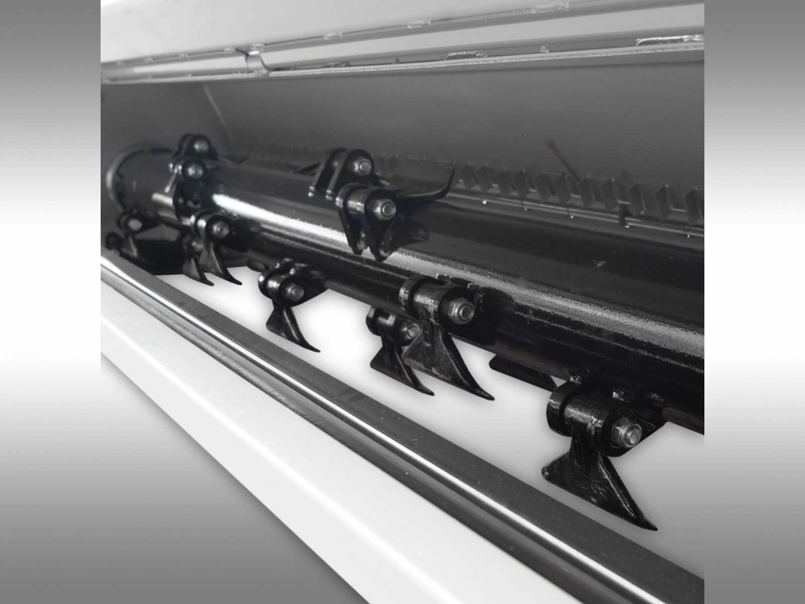 22 kusov 1,2 kg kladív, ktoré sú umiestnené na dvojitom špirálovom hnacom hriadeli, rozrezáva odrezky na minimálnu veľkosť. Dvojitý špirálový rotor pri rovnomernom zaťažení rotora zaisťuje obzvlášť tichý chod a dlhú životnosť s výrazne menšou námahou. Ani veľmi vysoká tráva, husté alebo slamené odrezky nie sú pre tento mulčovač žiadnym problémom!