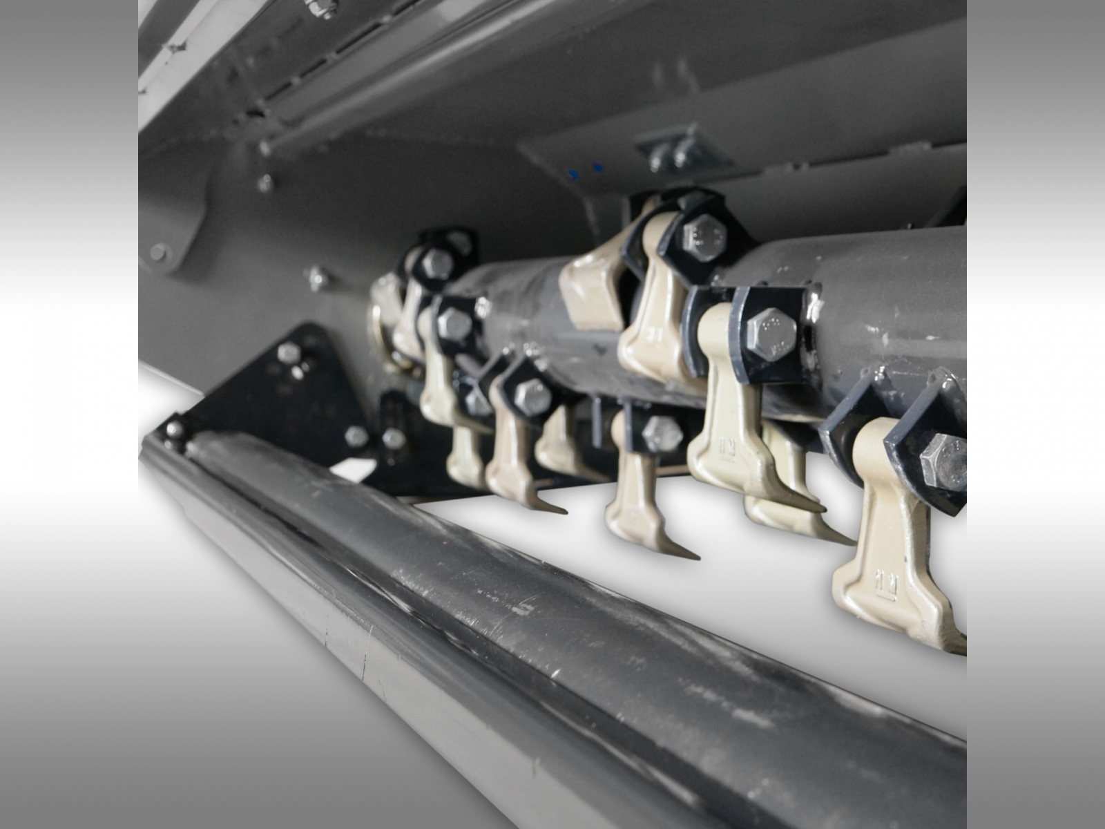 28 kusov 0,8 kg kladív, ktoré sú umiestnené na dvojitom špirálovom hnacom hriadeli, rozrezáva odrezky na minimálnu veľkosť. Dvojitý špirálový rotor pri rovnomernom zaťažení rotora zaisťuje obzvlášť tichý chod a dlhú životnosť s výrazne menšou námahou. Ani veľmi vysoká tráva, husté alebo slamené odrezky nie sú pre tento mulčovač žiadnym problémom!