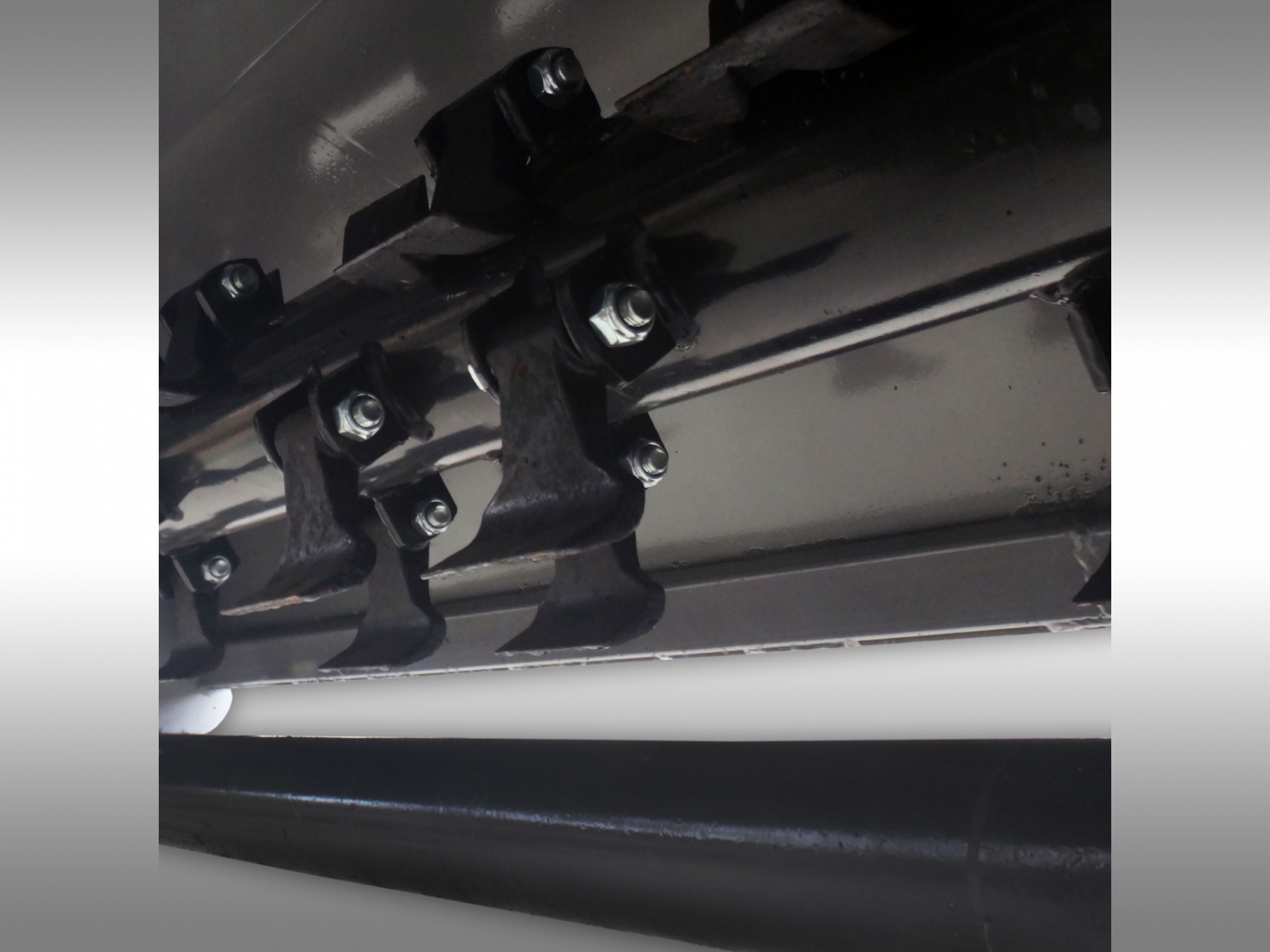 20 kusov 0,4 kg kladív, ktoré sú umiestnené na dvojitom špirálovom hnacom hriadeli, rozrezáva odrezky na minimálnu veľkosť. Dvojitý špirálový rotor pri rovnomernom zaťažení rotora zaisťuje obzvlášť tichý chod a dlhú životnosť s výrazne menšou námahou. Ani veľmi vysoká tráva, husté alebo slamené odrezky nie sú pre tento mulčovač žiadnym problémom!
