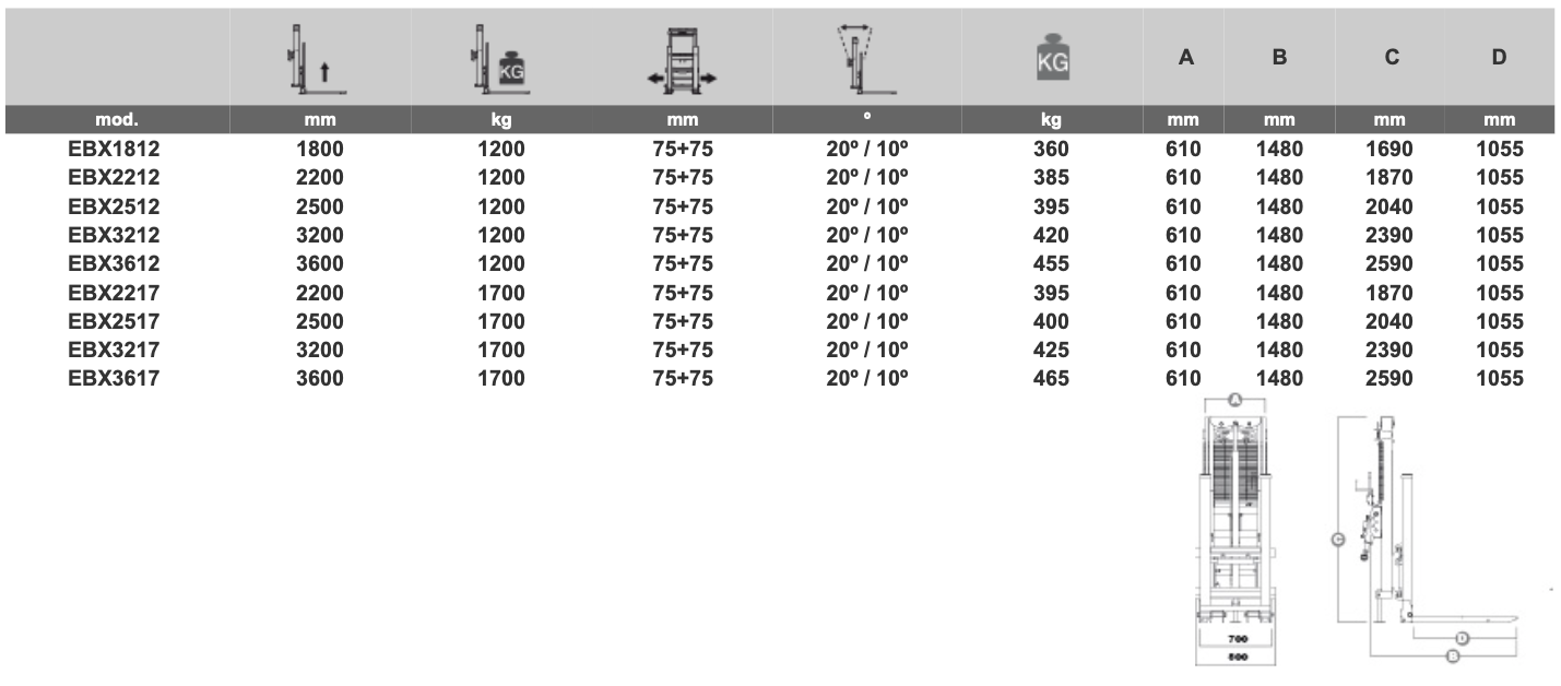 Paletizačné vidly NIUBO BOXTER 1200-1700kg