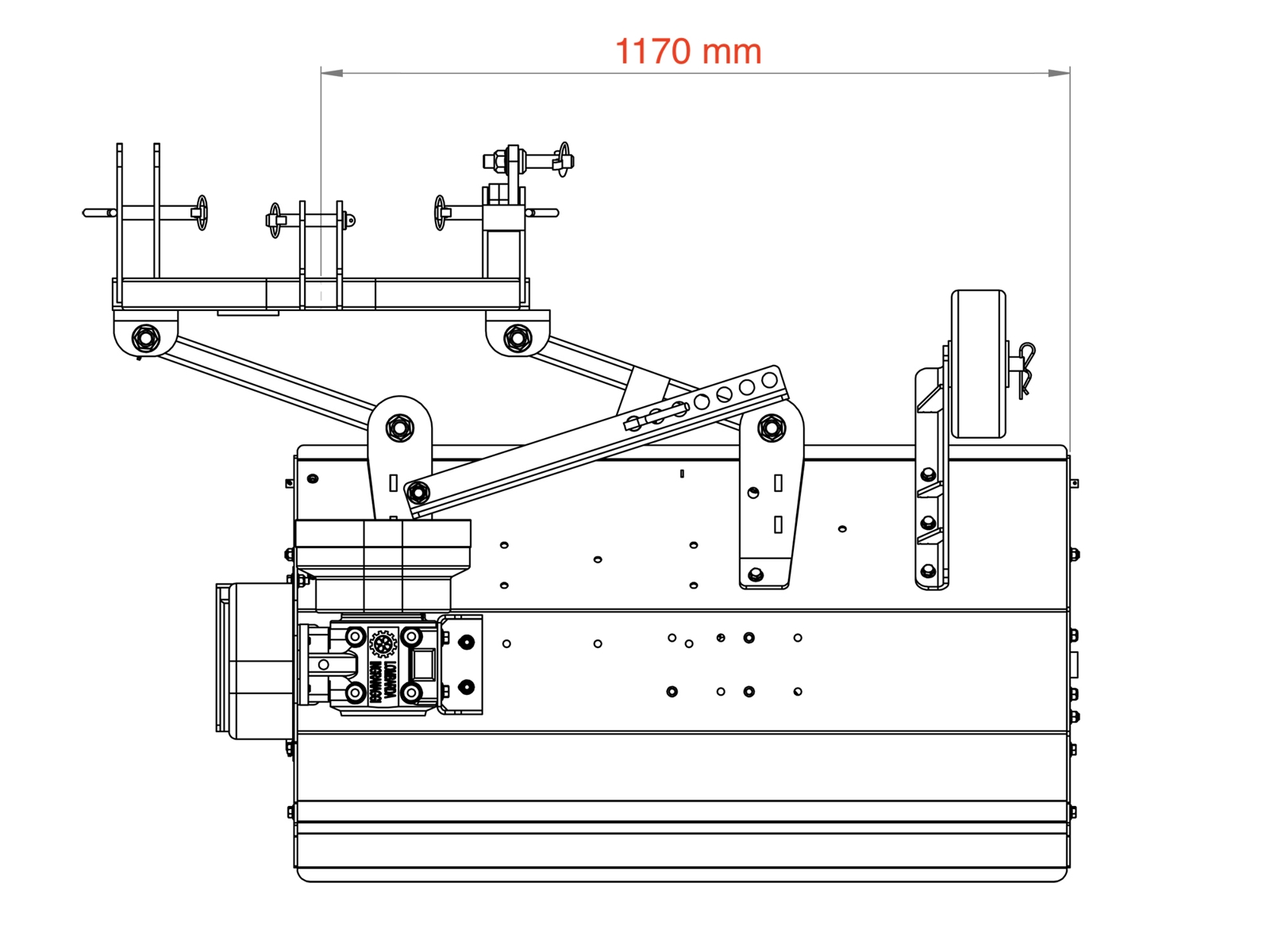Mulčovač môže byt použitý priamo za traktorom alebo mechanicky vyosený o 25 cm.