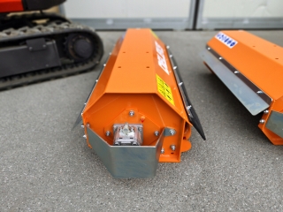 Mulčovač na bager DELEKS AR-80 s pracovnou šírkou 80 cm, hmotnosťou 80 kg na kosenie trávy, ostružín a kríkov do priemeru 2 cm. Vhodný pre minibagre s hmotnosťou 0,8 - 1,8 t. 32 ks kladiviek o hmotnosti 0,13 kg.