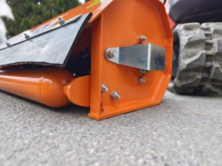 Mulčovač na bager DELEKS AR-100 s pracovnou šírkou 100 cm, hmotnosťou 93 kg na kosenie trávy, ostružín a kríkov do priemeru 2 cm. Vhodný pre minibagre s hmotnosťou 0,8 - 1,8 t. 40 ks kladiviek o hmotnosti 0,13 kg.