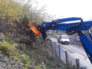 Mulčovač na bager DELEKS ARH-80 s pracovnou šírkou 80 cm, hmotnosťou 270 kg na kosenie trávy, stromov a kríkov do priemeru 5 cm. Vhodný pre 3 - 7 tonové bagre. 6 ks kladiviek s hmotnosťou 1,25 kg.